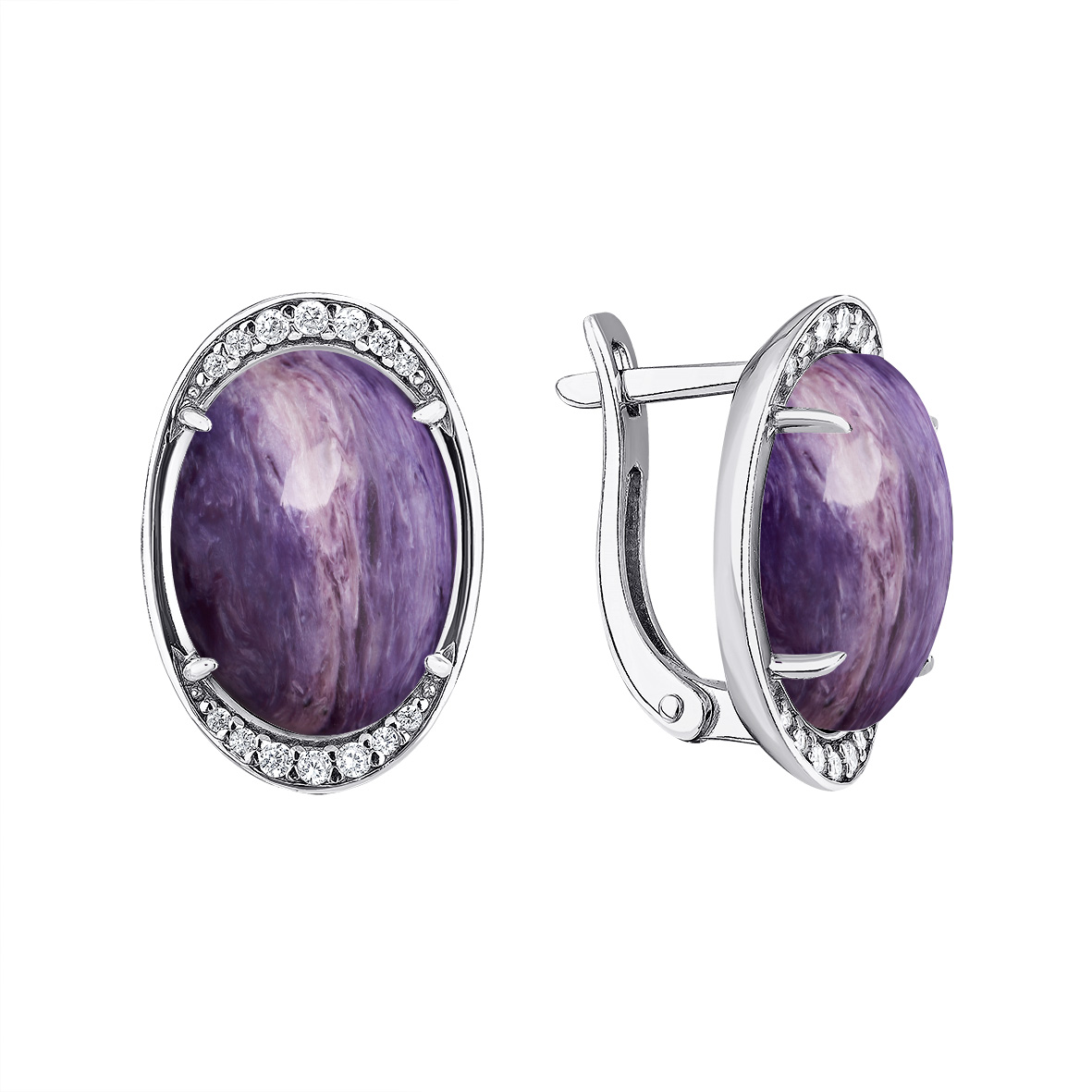 Серьги для женщин из серебра 925 пробы с чароитами,фианитами из коллекции Уральские самоцветы артикул 2340461968л от компании KRASNOE