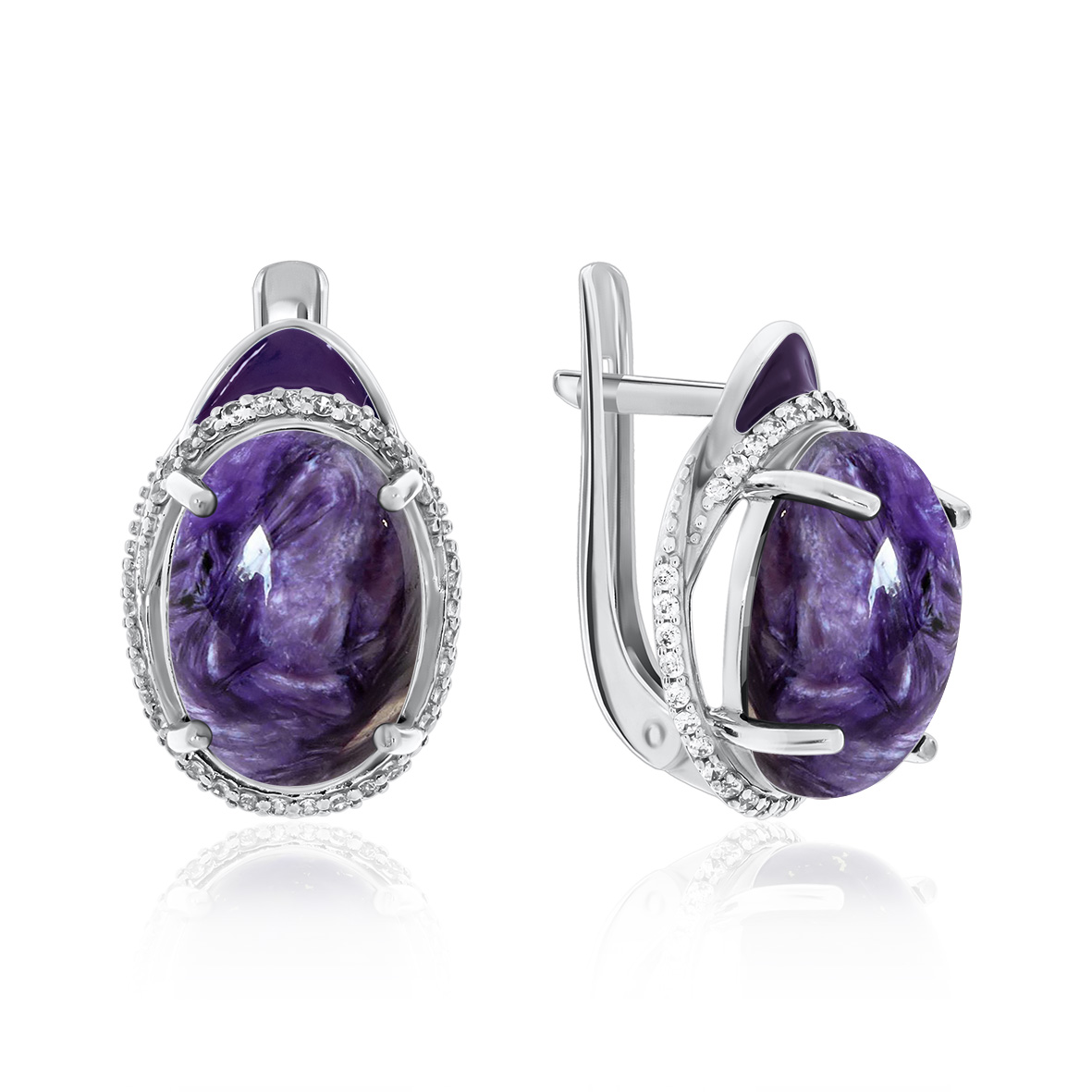 Серьги для женщин из серебра 925 пробы с чароитами,фианитами из коллекции Ирида артикул 346701F131л