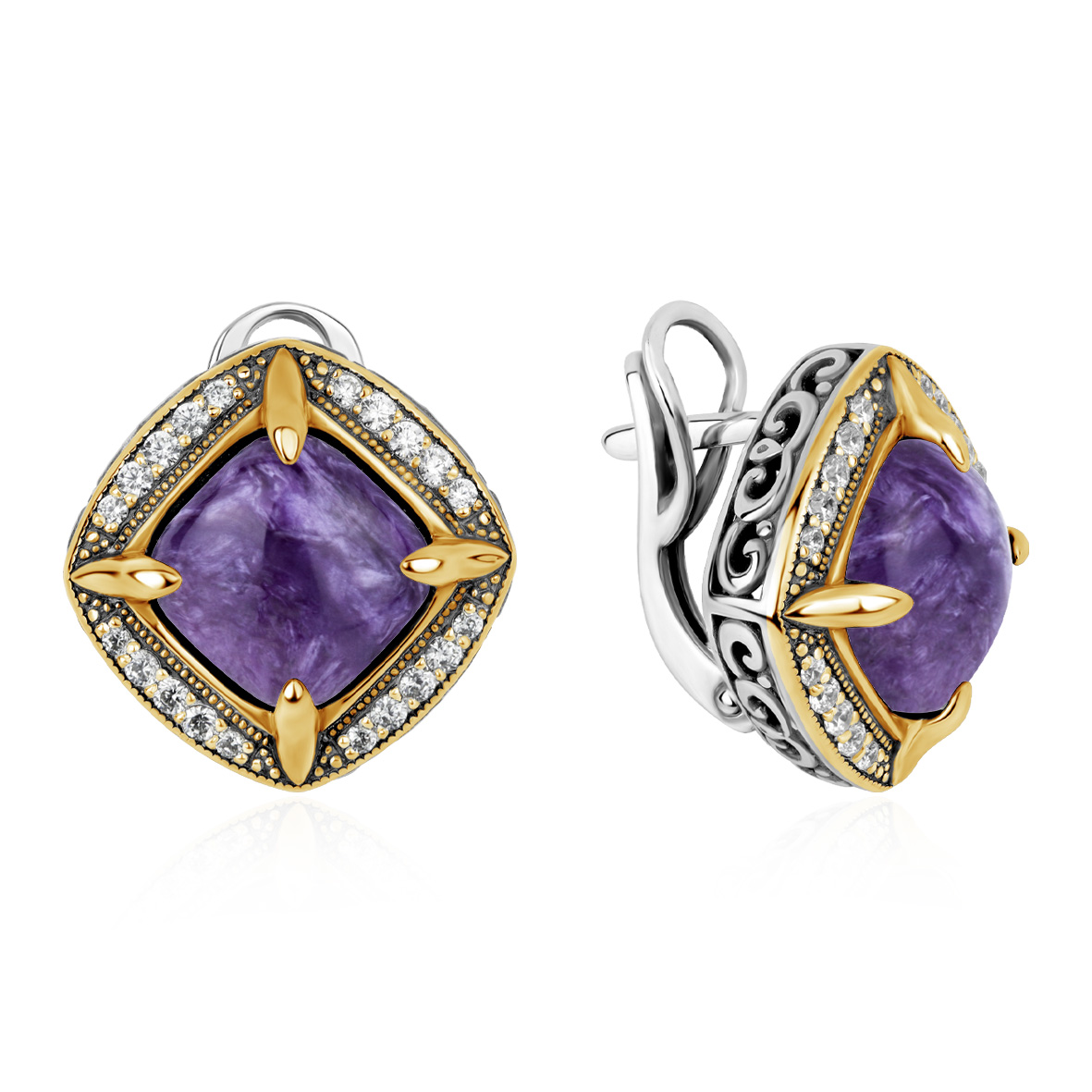 Серьги для женщин из серебра 925 пробы с чароитами,фианитами из коллекции Династия артикул 2317461933 от компании KRASNOE