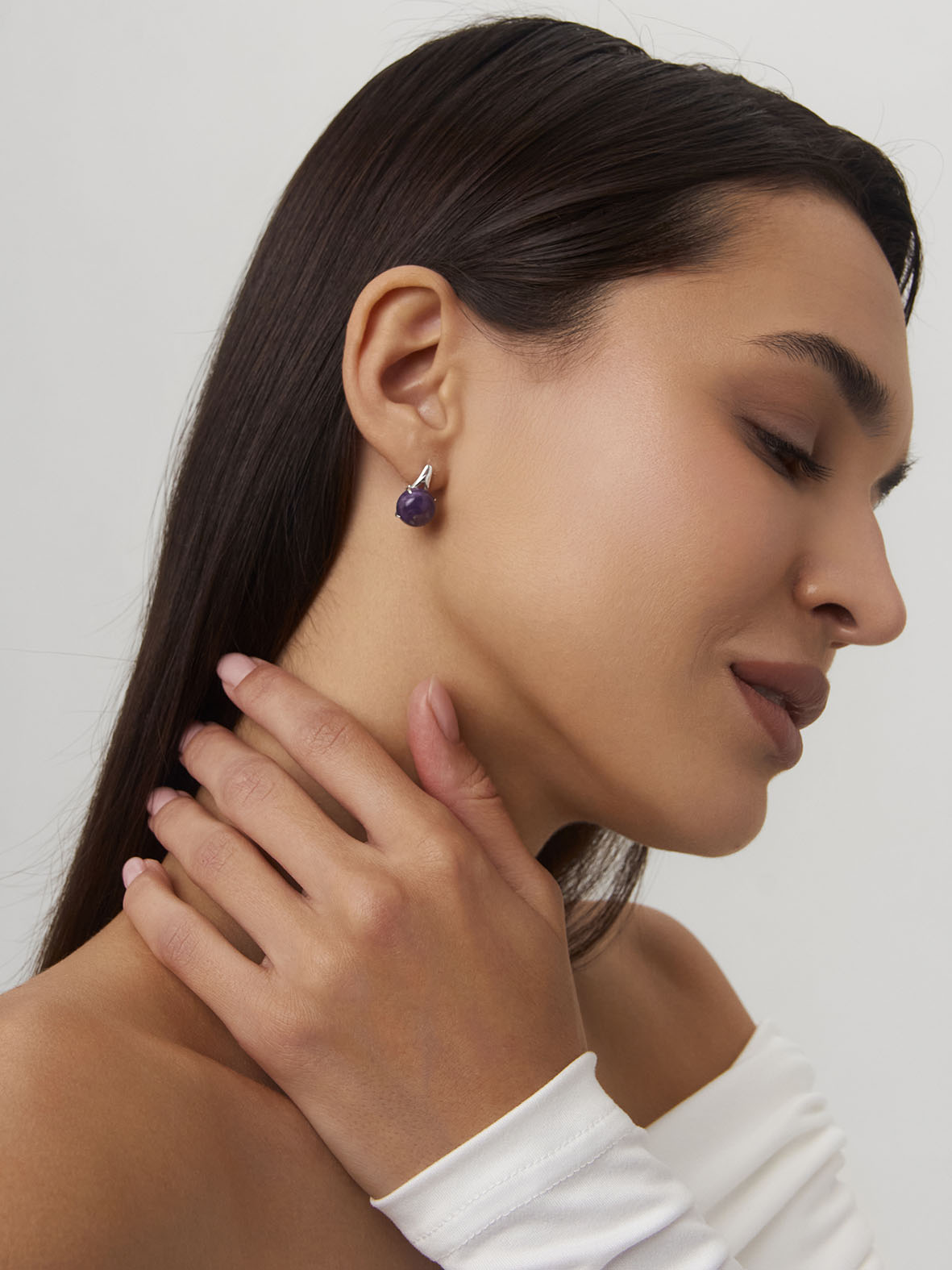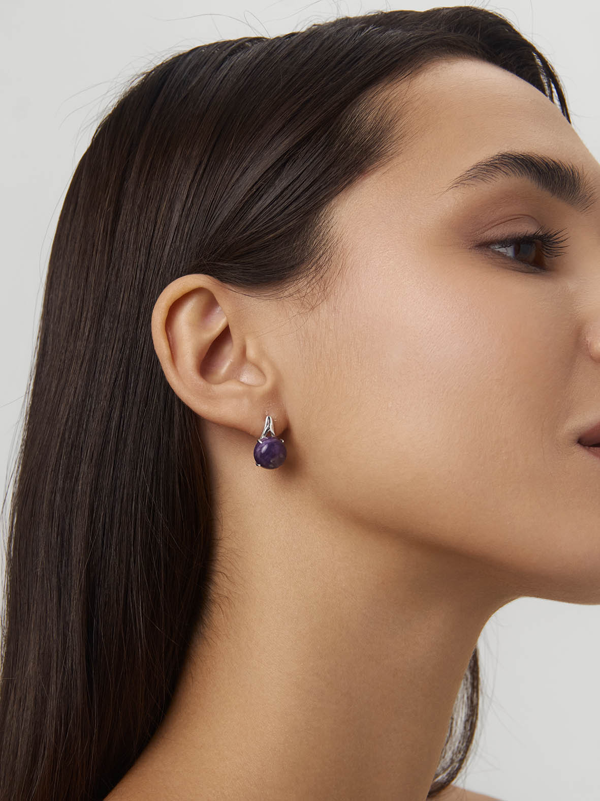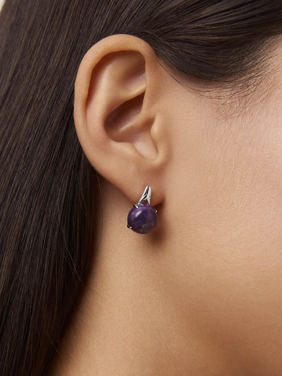 Серьги для женщин из серебра 925 пробы с чароитами из коллекции Уральские самоцветы артикул 2340460124 от компании KRASNOE