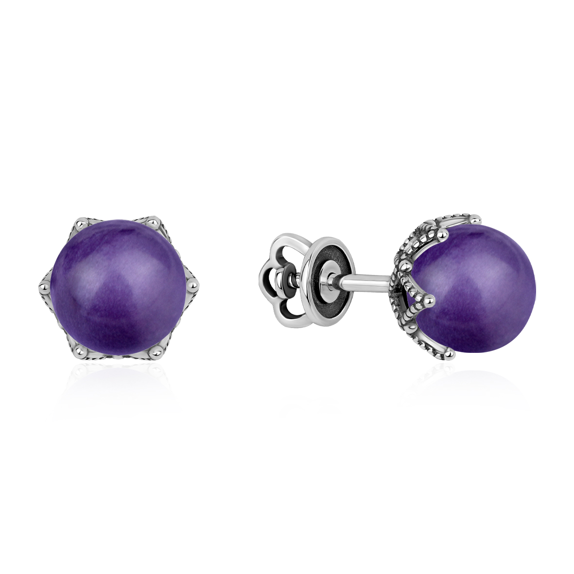 Пусеты для женщин из серебра 925 пробы с чароитами из коллекции Уральские самоцветы артикул 2340466328 от компании KRASNOE