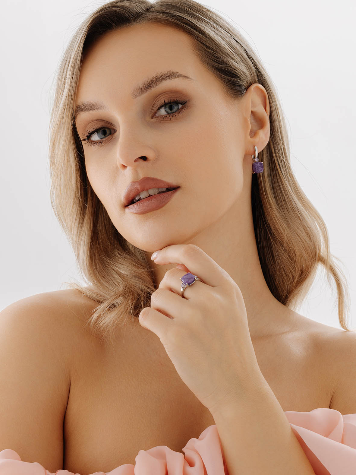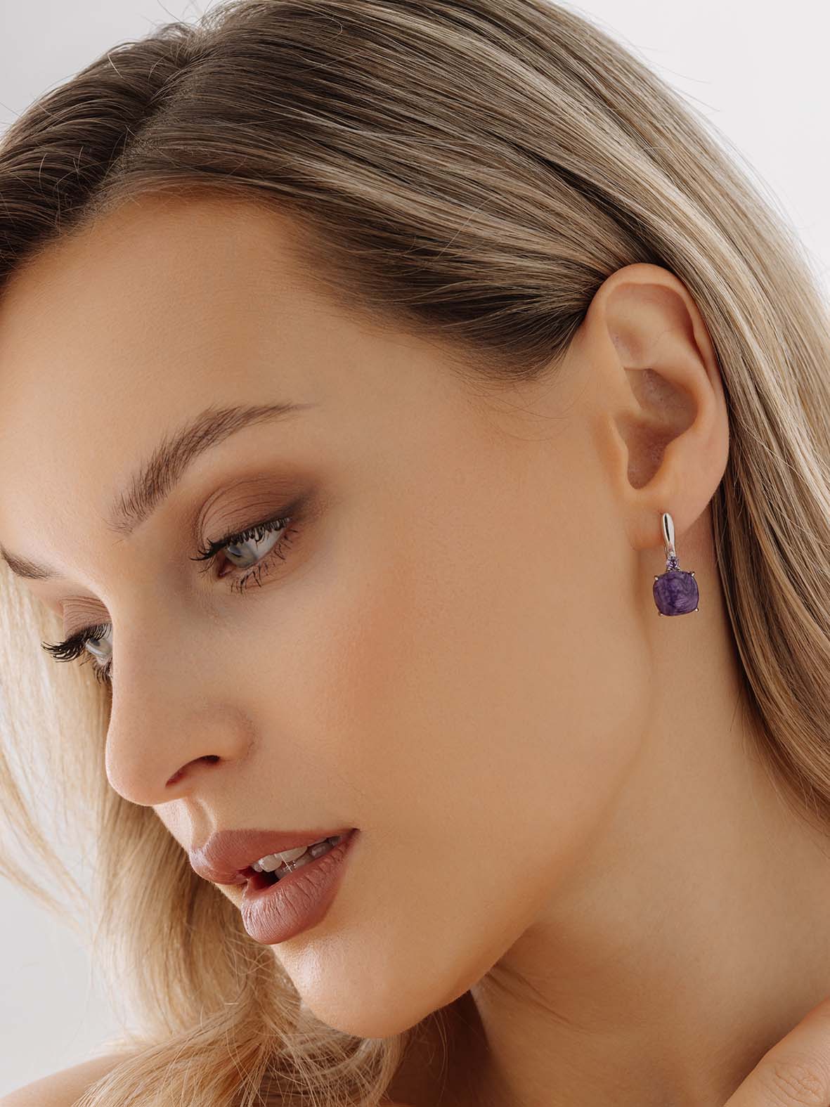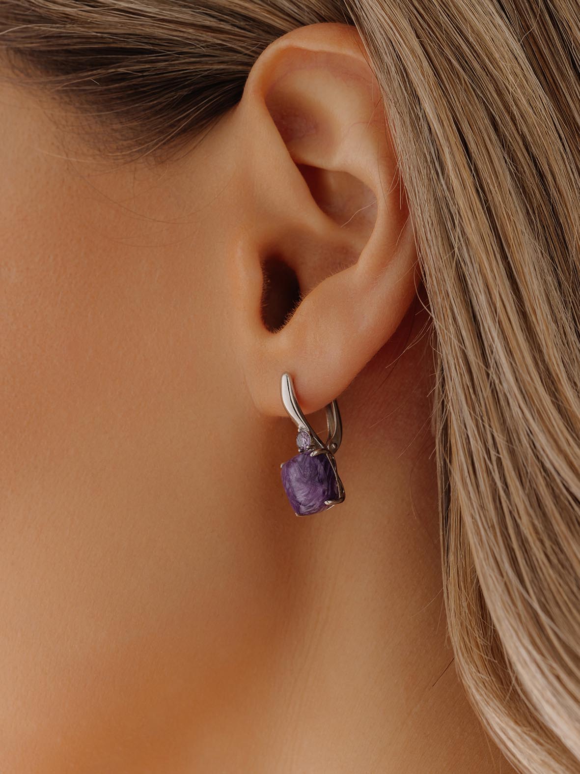 Серьги для женщин из серебра 925 пробы с фианитами,чароитами из коллекции Уральские самоцветы артикул 2340460380-93 от компании KRASNOE