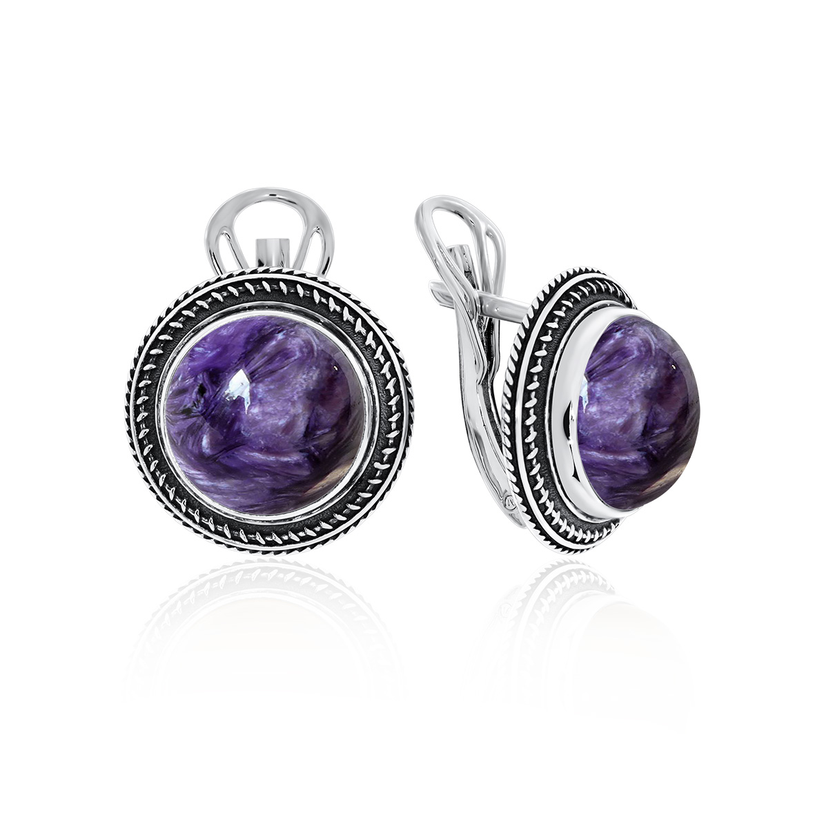 Серьги для женщин из серебра 925 пробы с чароитами из коллекции Династия артикул 2310460954 от компании KRASNOE