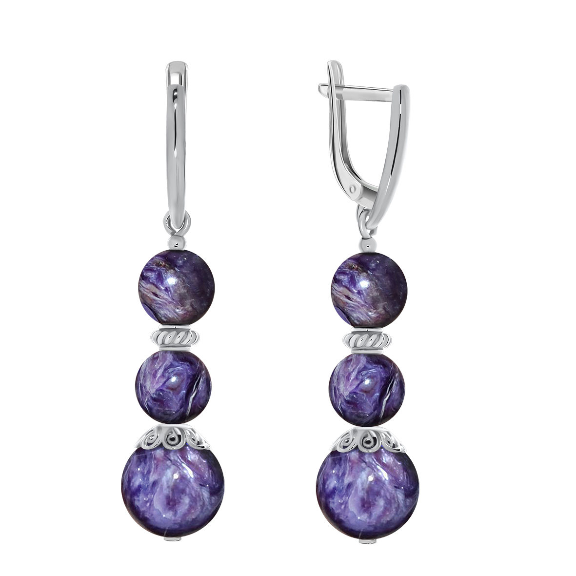 Серьги для женщин из серебра 925 пробы с чароитами из коллекции Bubbles артикул 2340460317 от компании KRASNOE