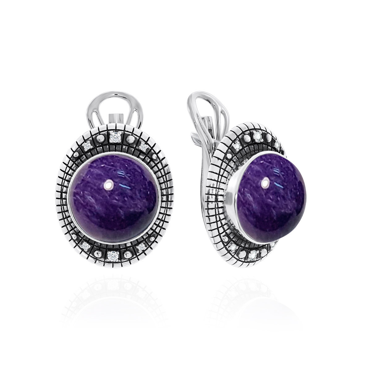 Серьги для женщин из серебра 925 пробы с чароитами,фианитами из коллекции Династия артикул 2310460955 от компании KRASNOE