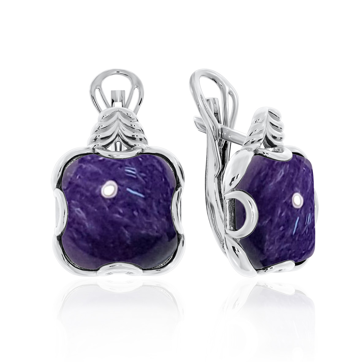 Серьги для женщин из серебра 925 пробы с чароитами из коллекции Уральские самоцветы артикул 2340460976 от компании KRASNOE