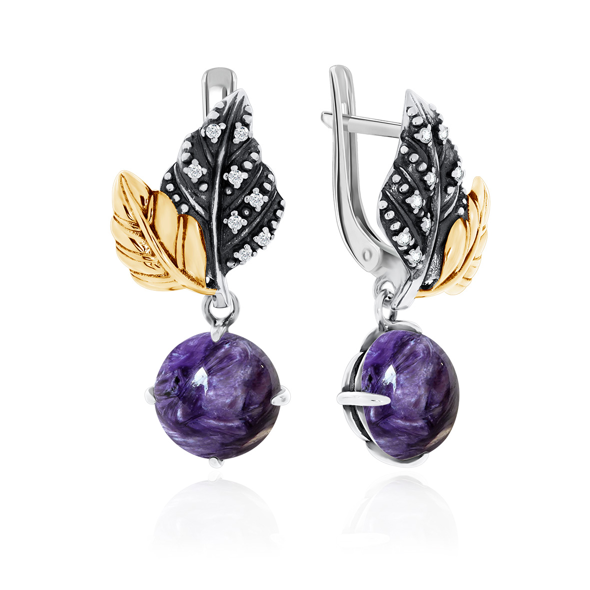 Серьги для женщин из серебра 925 пробы с чароитами,фианитами из коллекции Dinamic артикул 2317462265 от компании KRASNOE