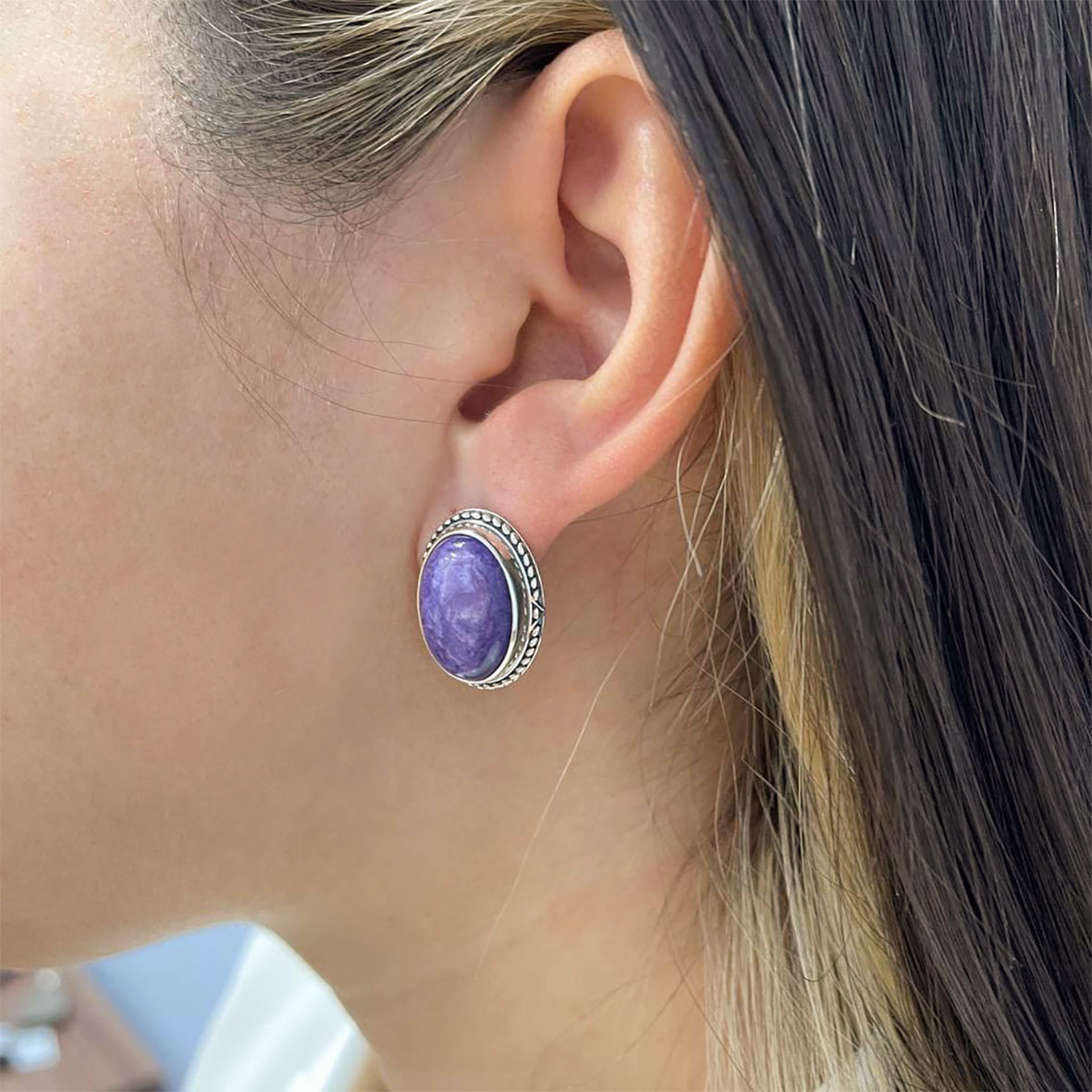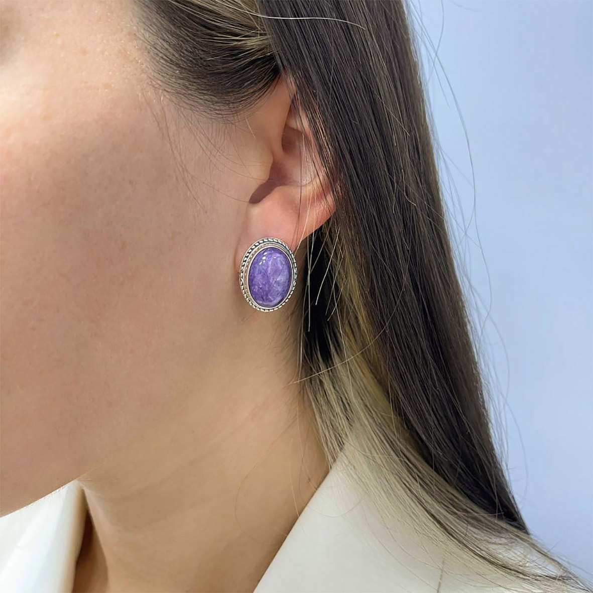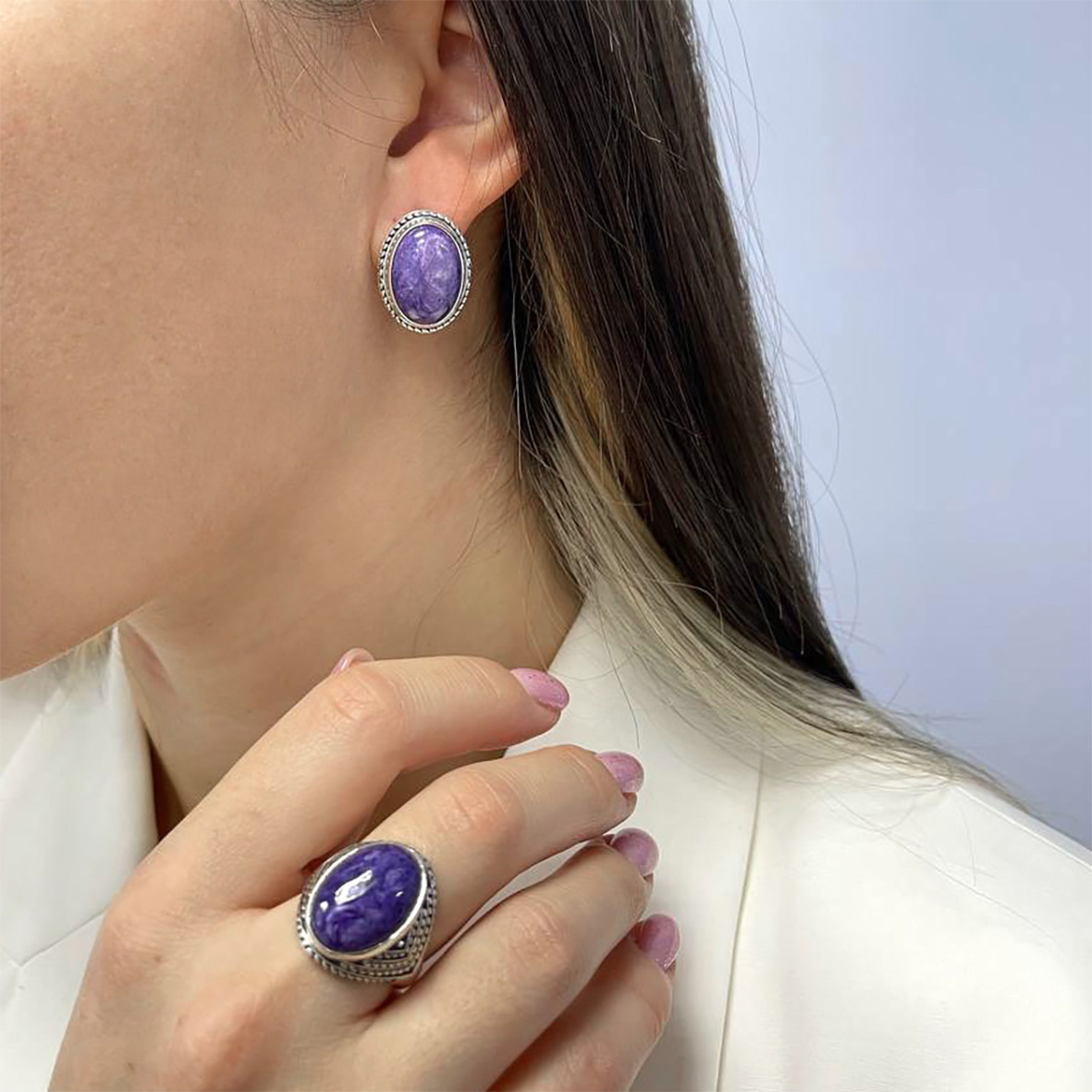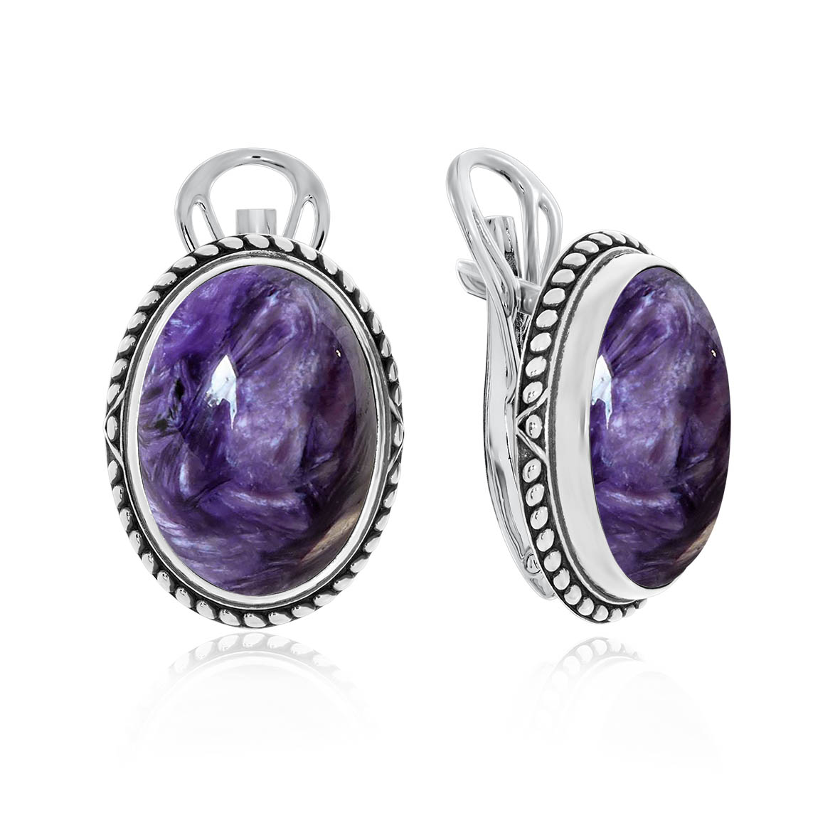 Серьги для женщин из серебра 925 пробы с чароитами из коллекции Династия артикул 2310460969 от компании KRASNOE