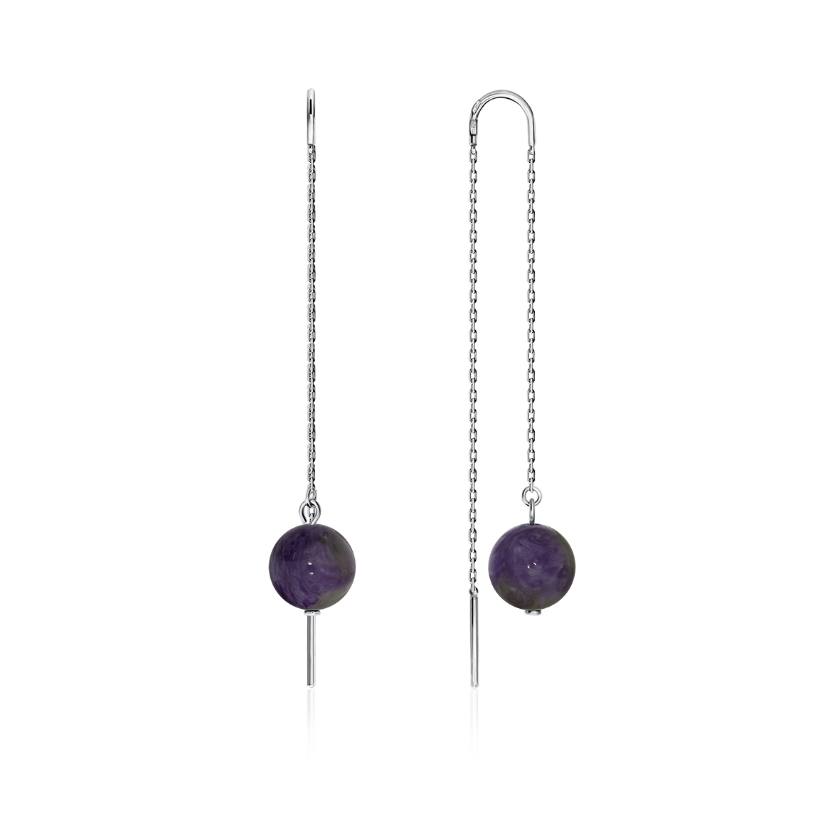 Серьги для женщин из серебра 925 пробы с чароитами из коллекции Bubbles артикул 2340460711-2 от компании KRASNOE