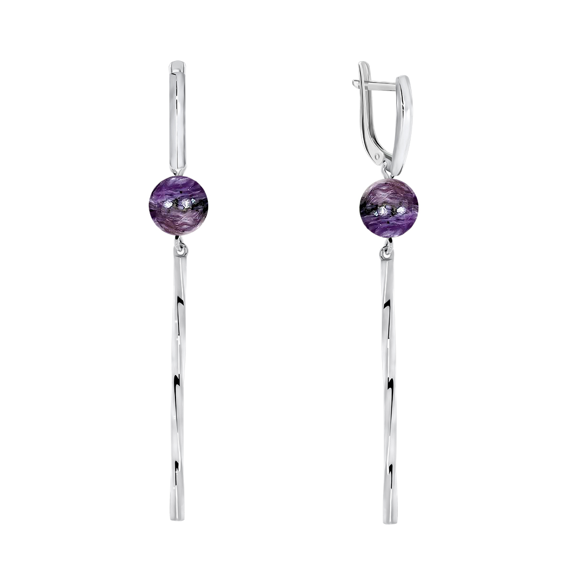 Серьги для женщин из серебра 925 пробы с чароитами из коллекции Magic stick артикул 2340460725 от компании KRASNOE