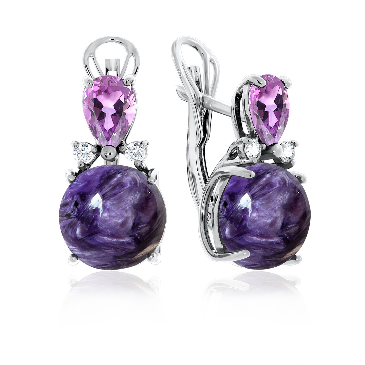 Серьги для женщин из серебра 925 пробы с аметистами,чароитами из коллекции Уральские самоцветы артикул 2340460935-93 от компании KRASNOE