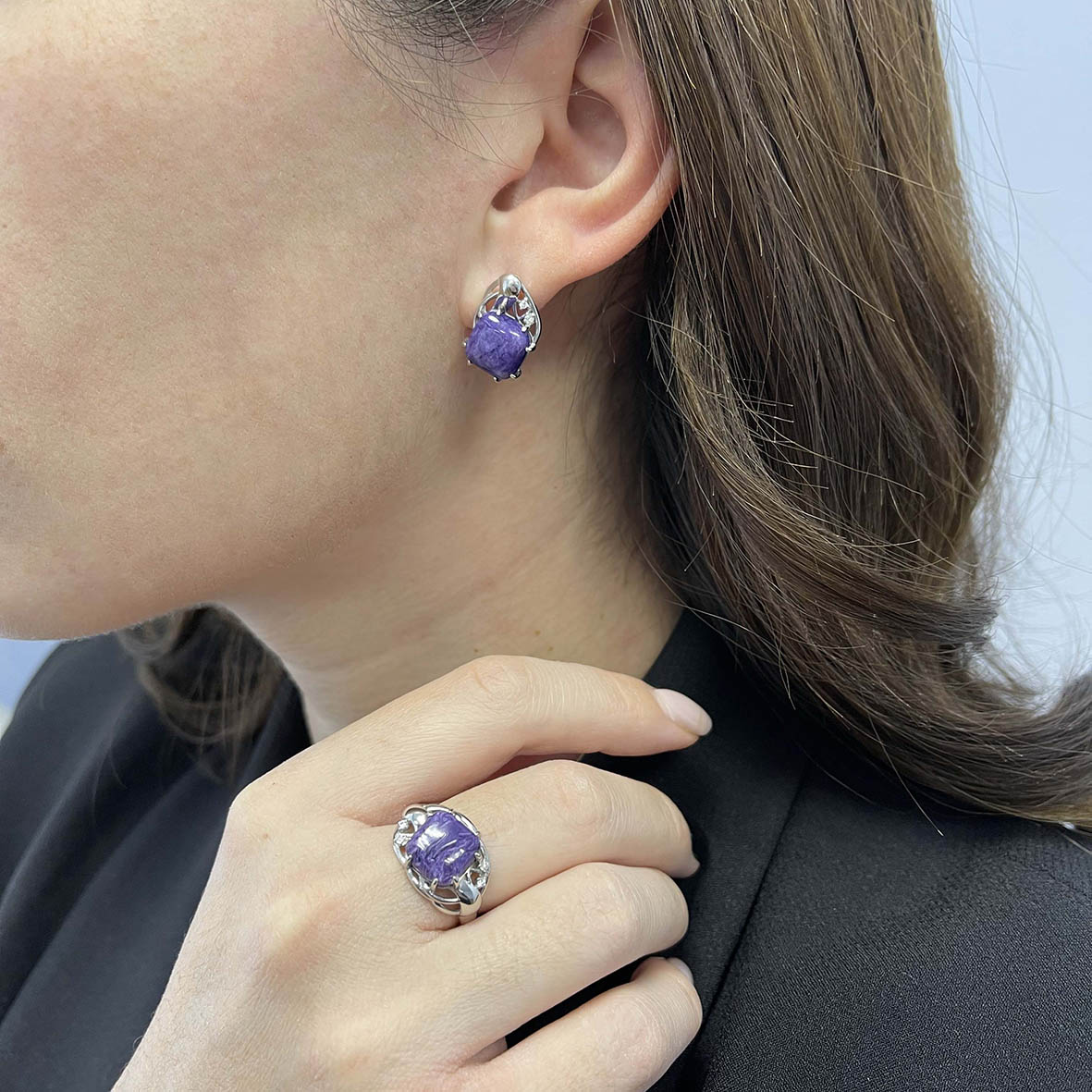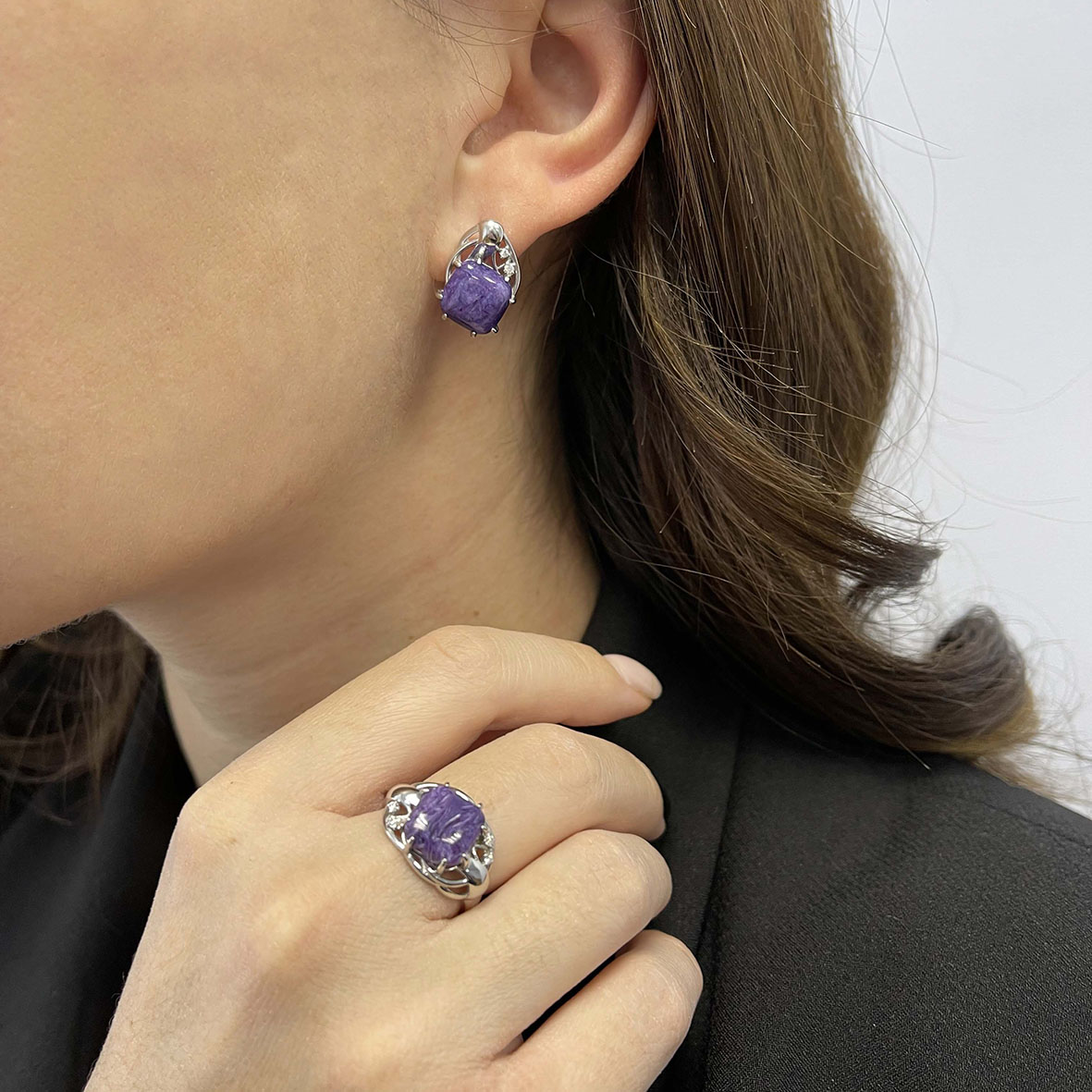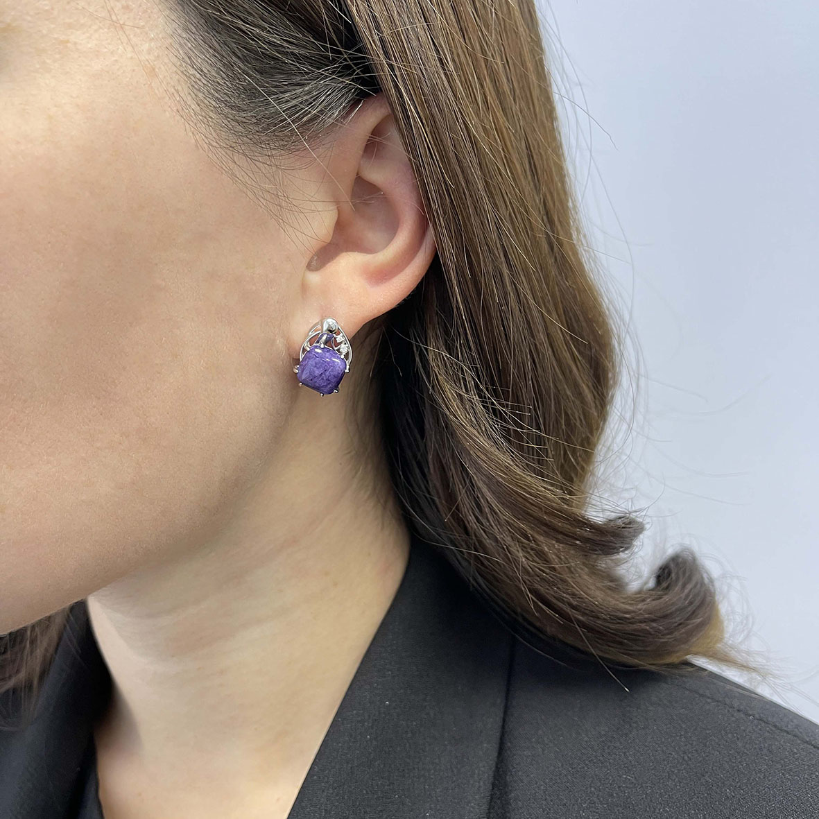 Серьги для женщин из серебра 925 пробы с чароитами,фианитами из коллекции Fancy артикул 2340460984 от компании KRASNOE