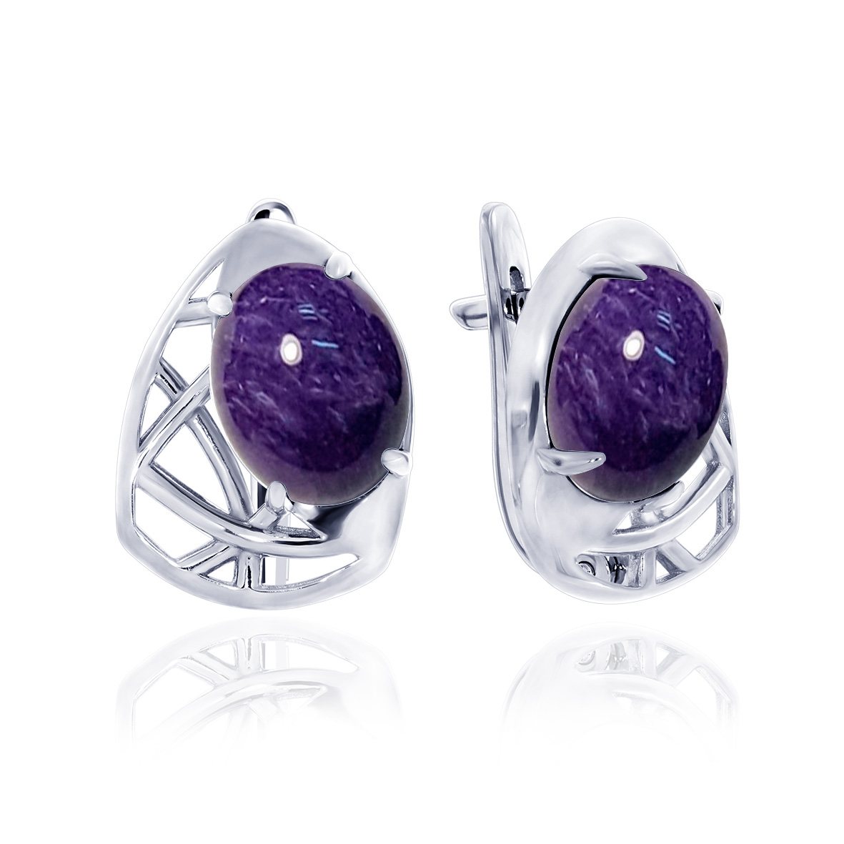 Серьги для женщин из серебра 925 пробы с чароитами из коллекции Fancy артикул 2340460988 от компании KRASNOE