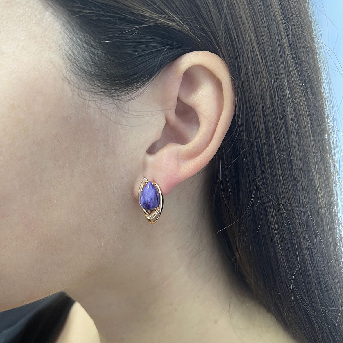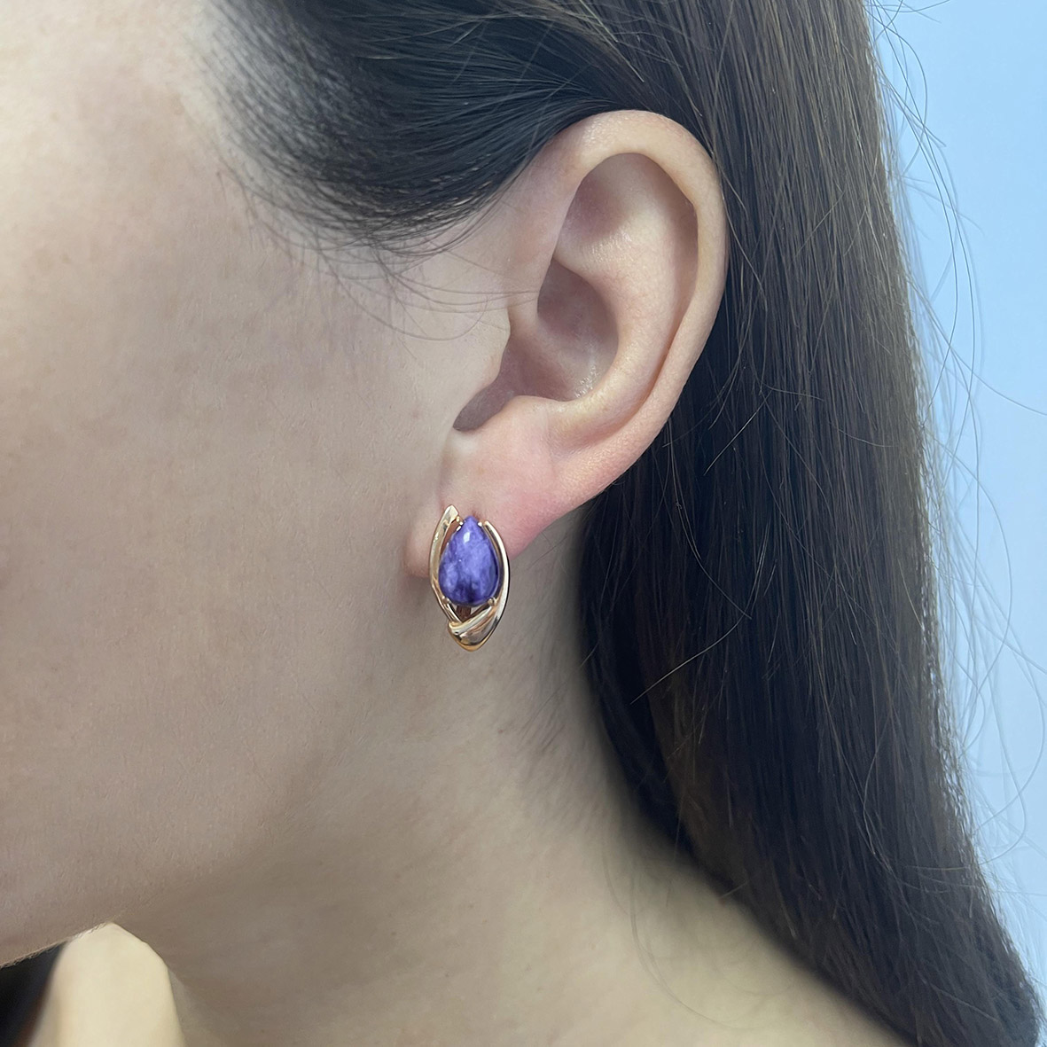 Серьги для женщин из серебра 925 пробы с чароитами из коллекции Fancy артикул 2320462362 от компании KRASNOE