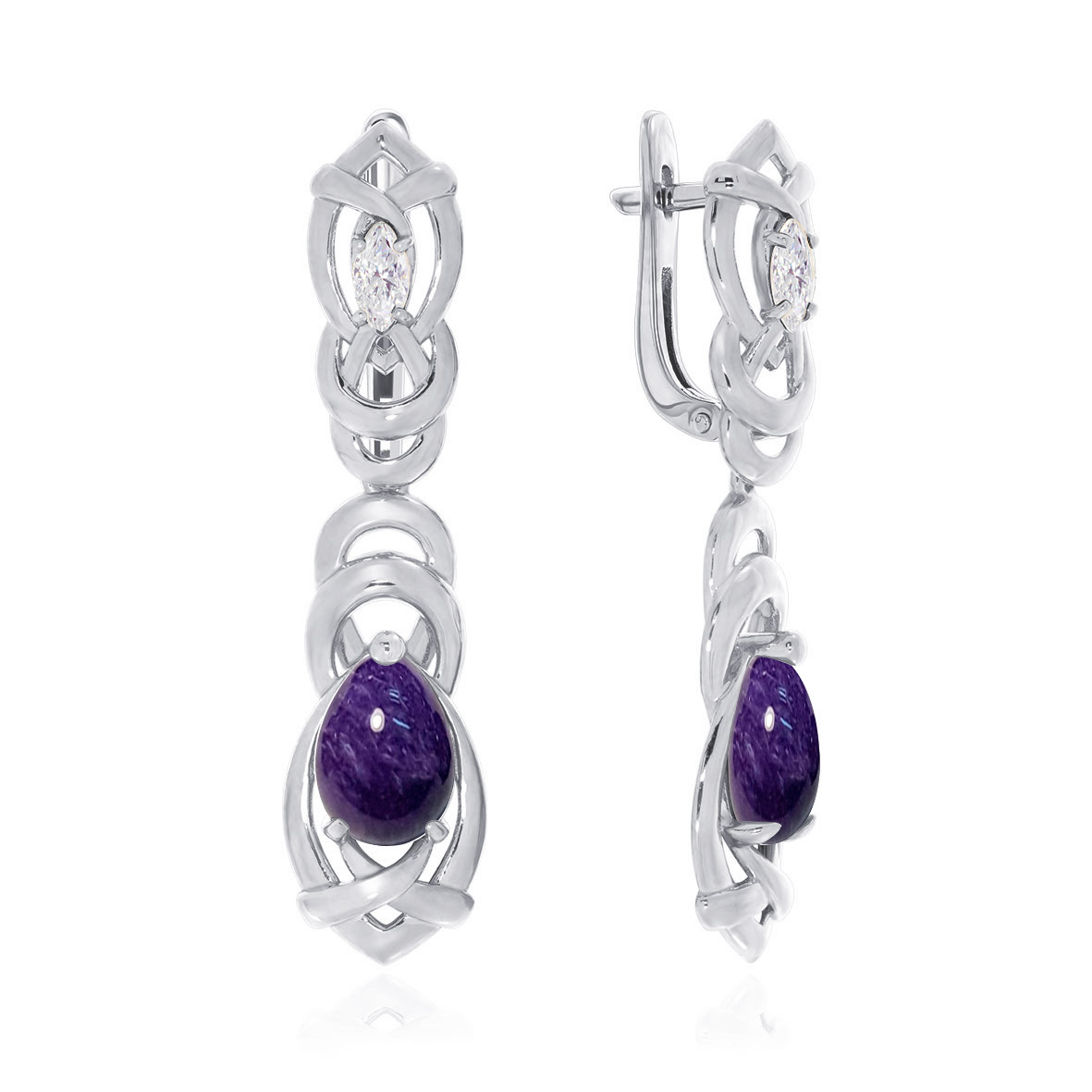Серьги для женщин из серебра 925 пробы с фианитами,чароитами из коллекции Медина артикул 2340460944 от компании KRASNOE