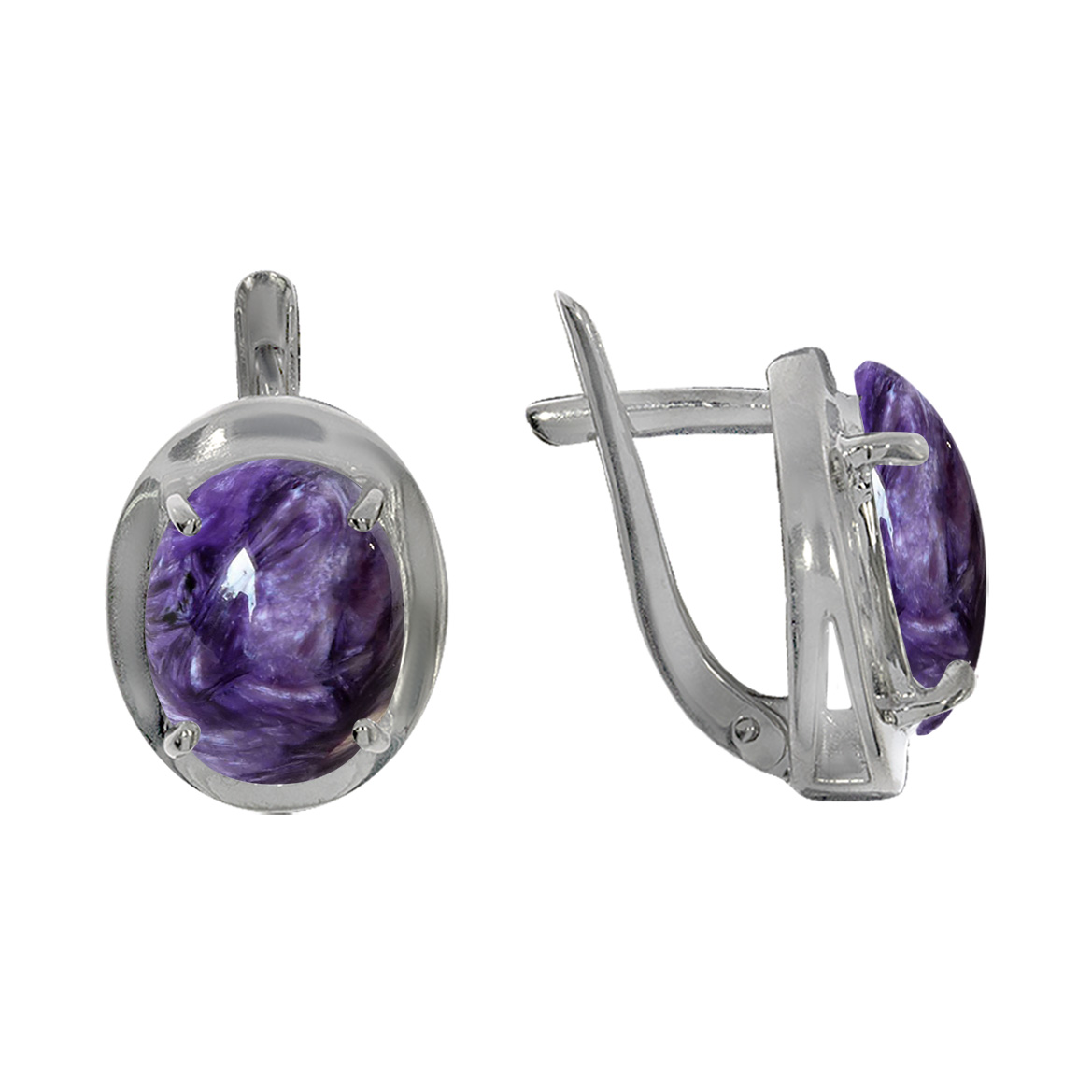 Серьги для женщин из серебра 925 пробы с чароитами из коллекции Ирида артикул 2340460029 от компании KRASNOE