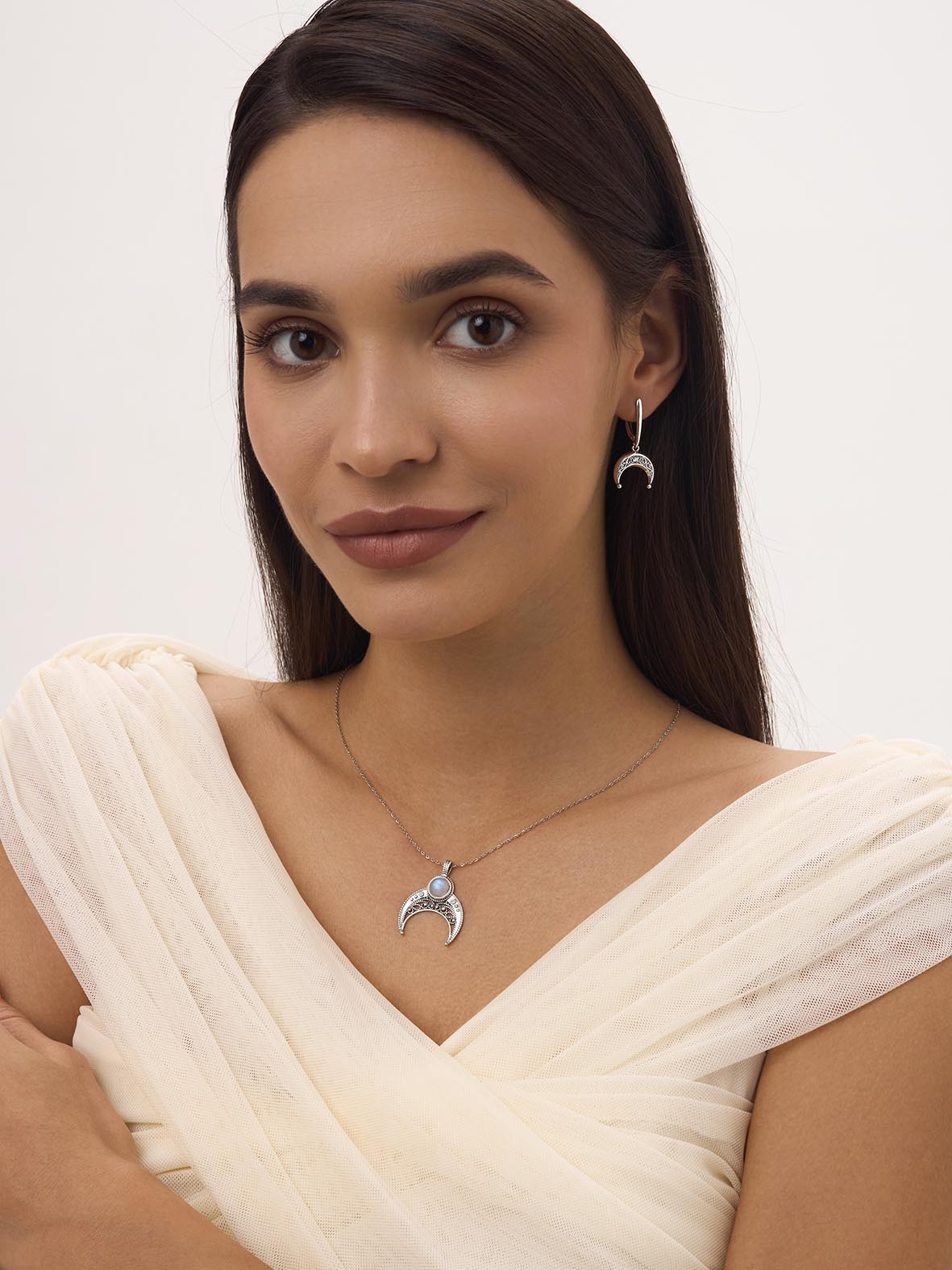 Серьги для женщин из серебра 925 пробы с фианитами из коллекции Лунница артикул 2310201824 от компании KRASNOE