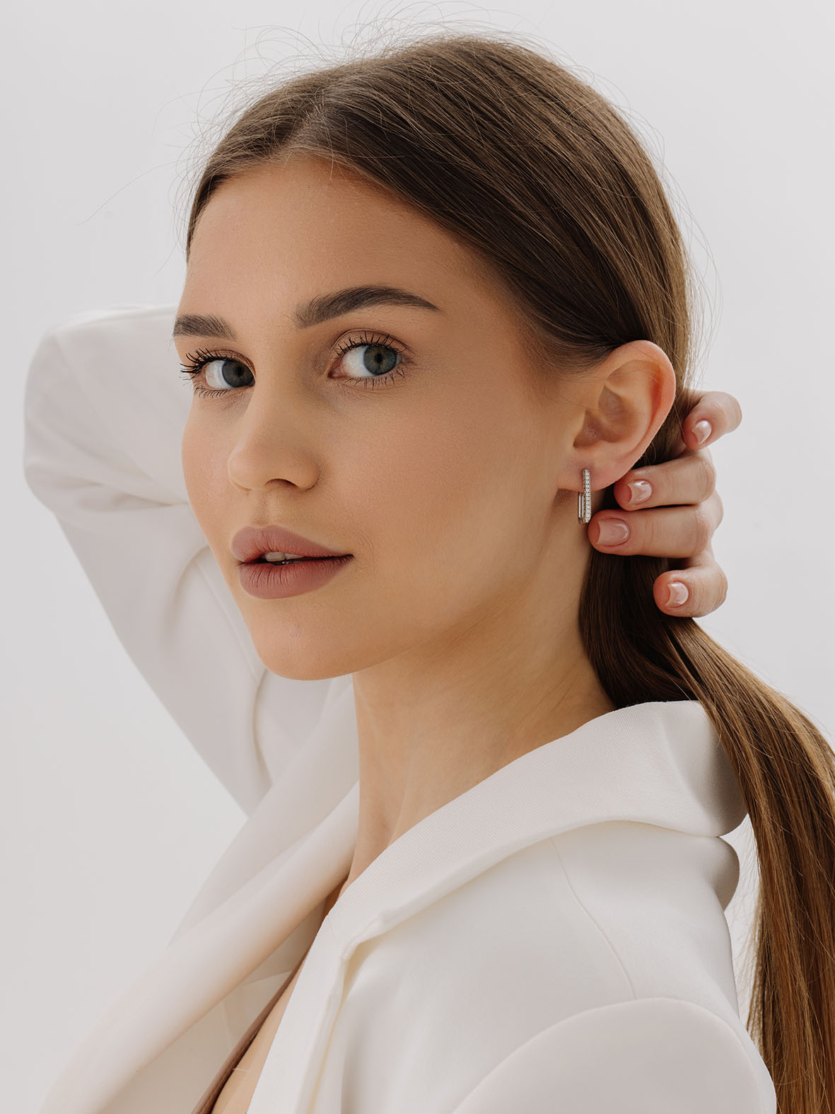 Серьги для женщин из серебра 925 пробы с фианитами из коллекции Geometry (или Minimalism) артикул 2340205876л от компании KRASNOE