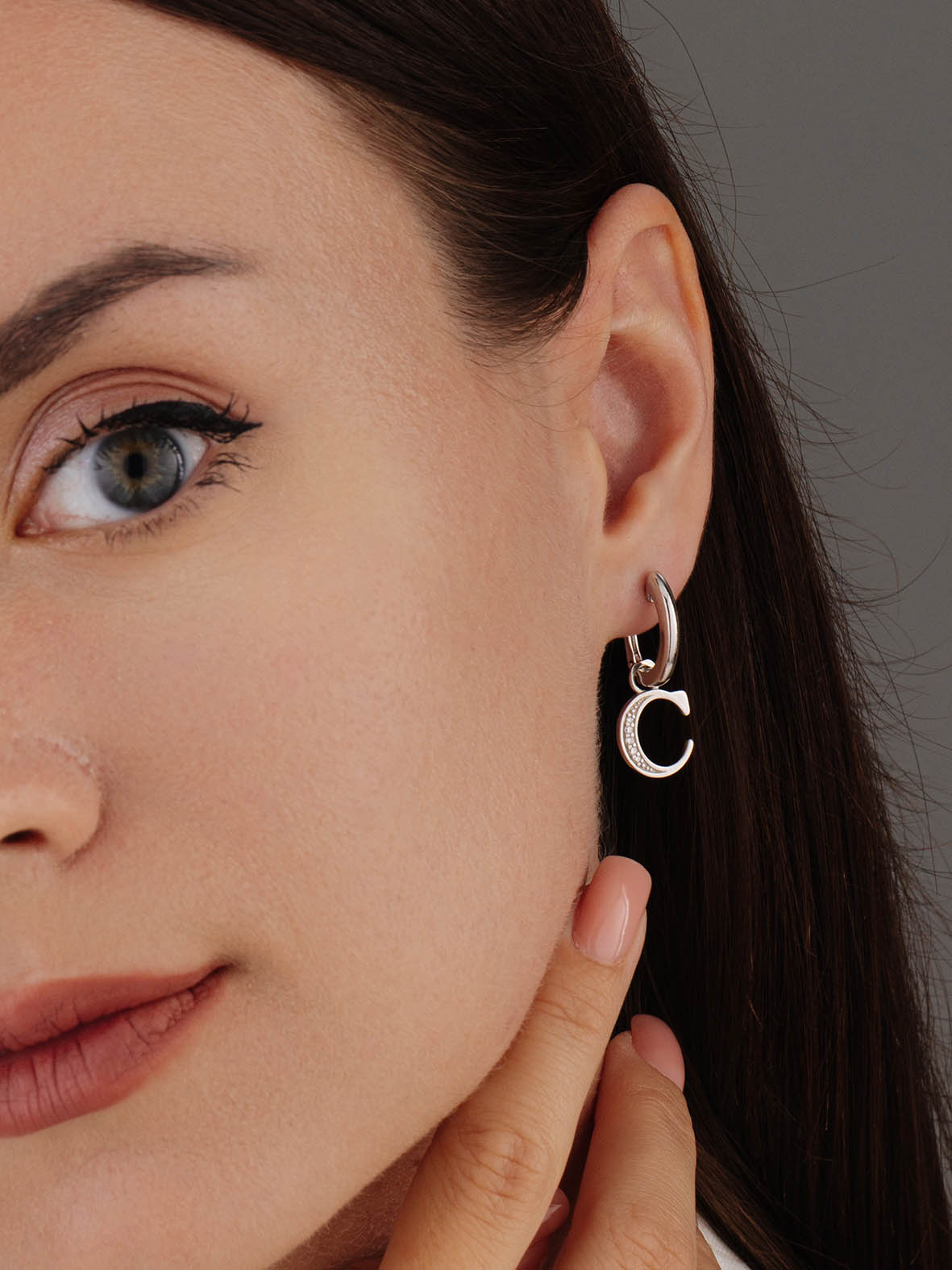 Серьги для женщин из серебра 925 пробы с фианитами из коллекции Alphabet артикул 2340205858л от компании KRASNOE