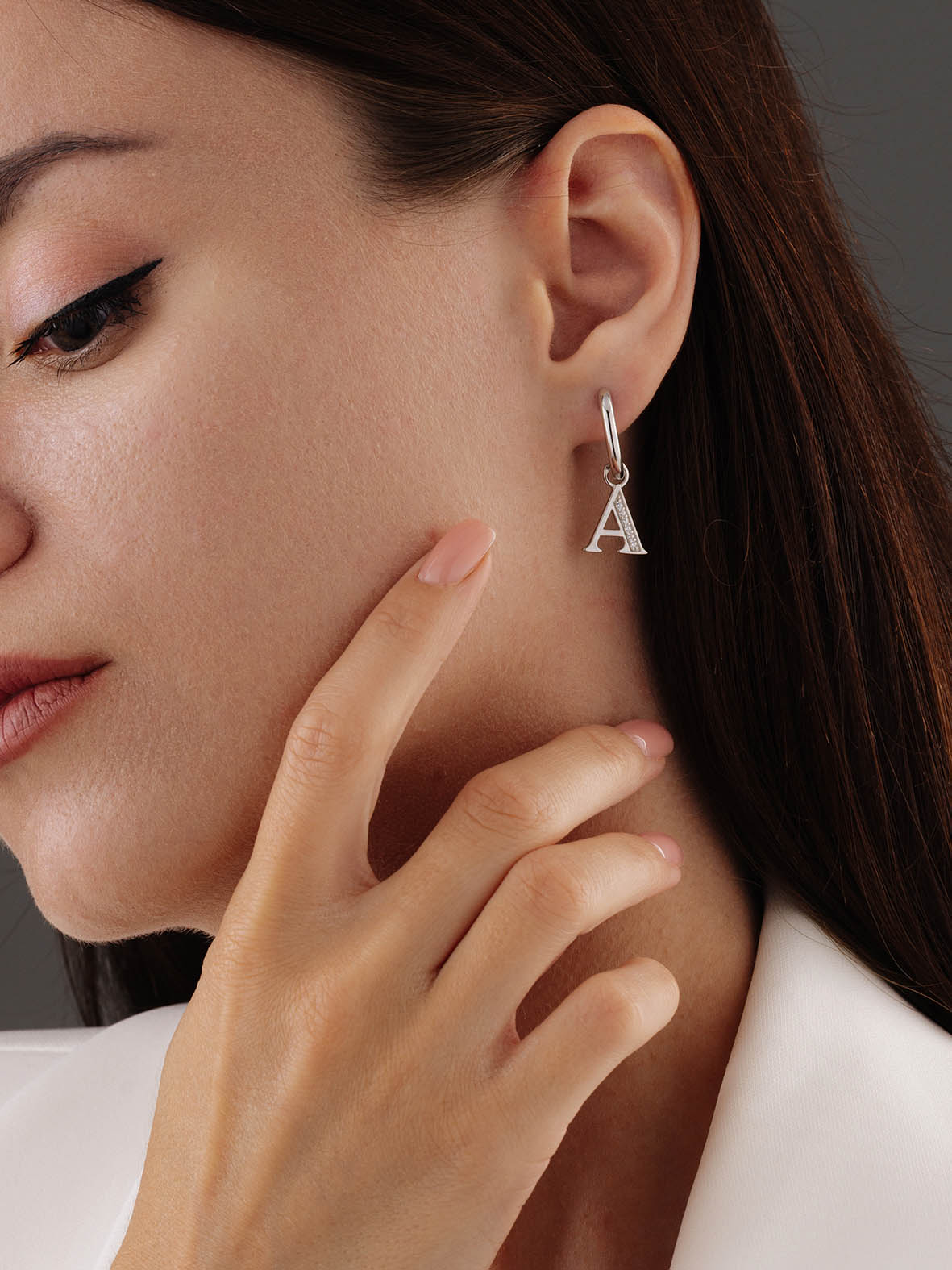 Серьги для женщин из серебра 925 пробы с фианитами из коллекции Alphabet артикул 2340205856л от компании KRASNOE