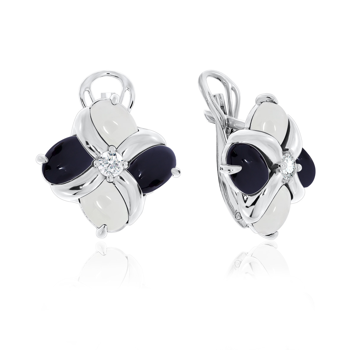 Серьги для женщин из серебра 925 пробы с фианитами,агатами из коллекции Сад камней артикул 2340392908-11 от компании KRASNOE