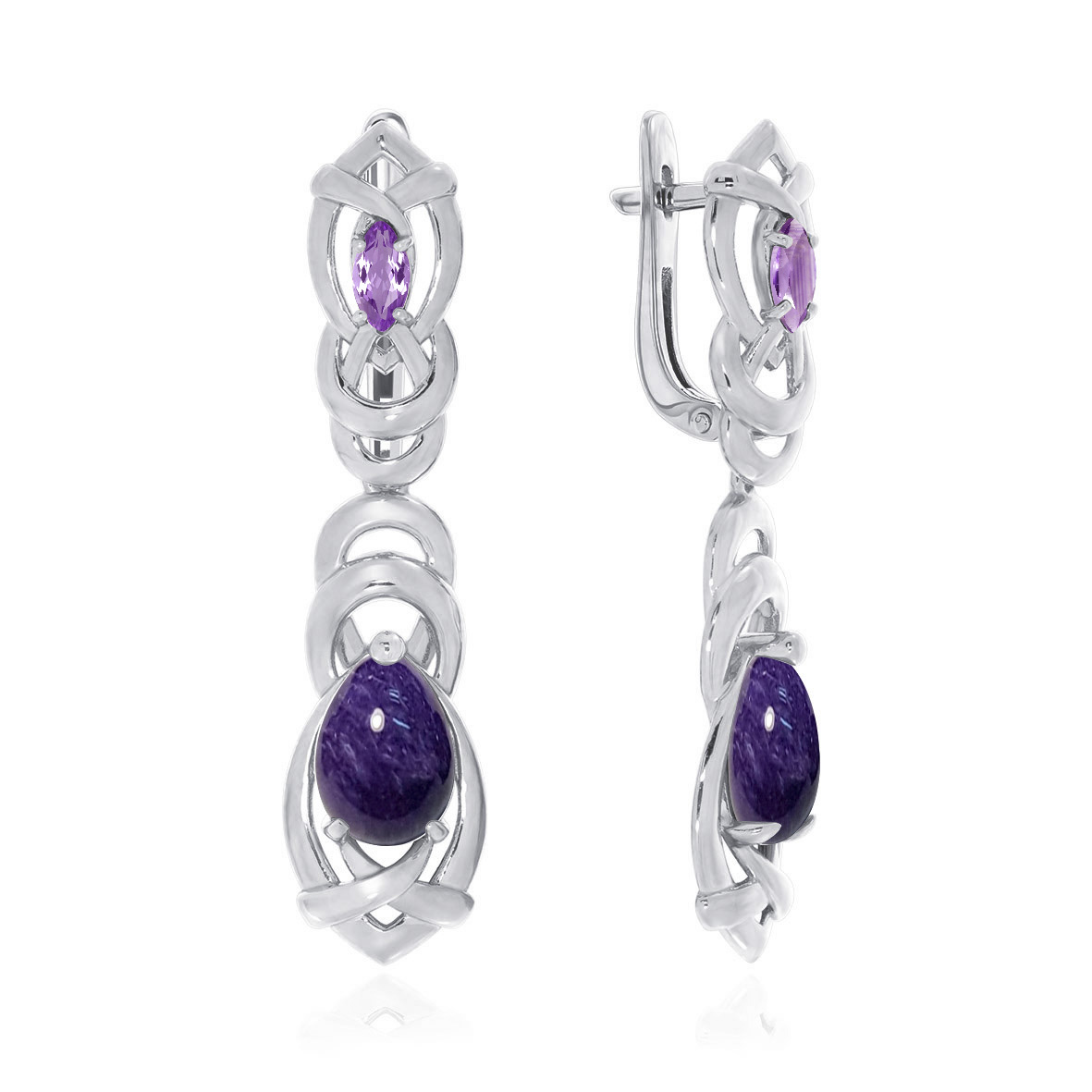 Серьги для женщин из серебра 925 пробы с фианитами,чароитами из коллекции Медина артикул 2340460944-92 от компании KRASNOE