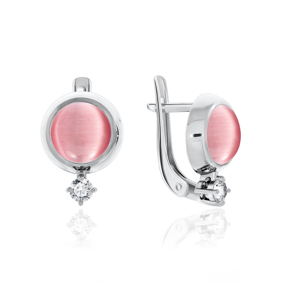 Серьги для женщин из серебра 925 пробы с фианитами,кошачий глазами из коллекции Уральские самоцветы артикул 2340260341-30 от компании KRASNOE