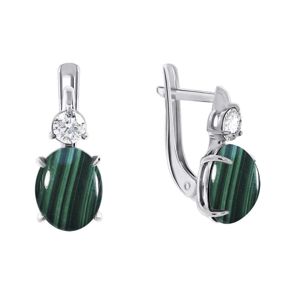 Серьги для женщин из серебра 925 пробы с фианитами,малахитами из коллекции Созвездие артикул 2340380367 от компании KRASNOE