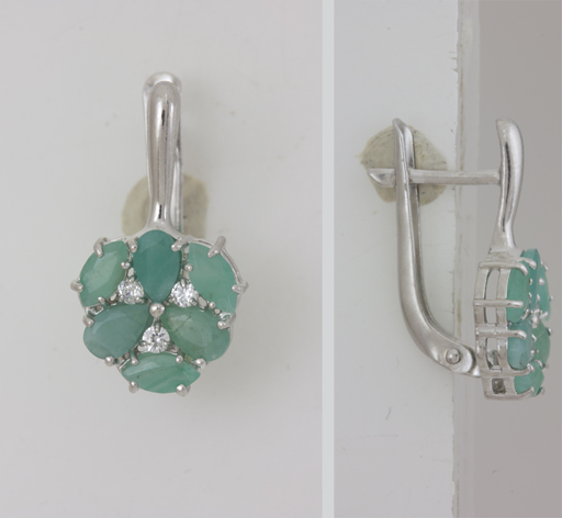 Серьги для женщин из серебра 925 пробы с фианитами,изумрудами,,бериллами артикул 3987013007-6 от компании Алмаз-Холдинг