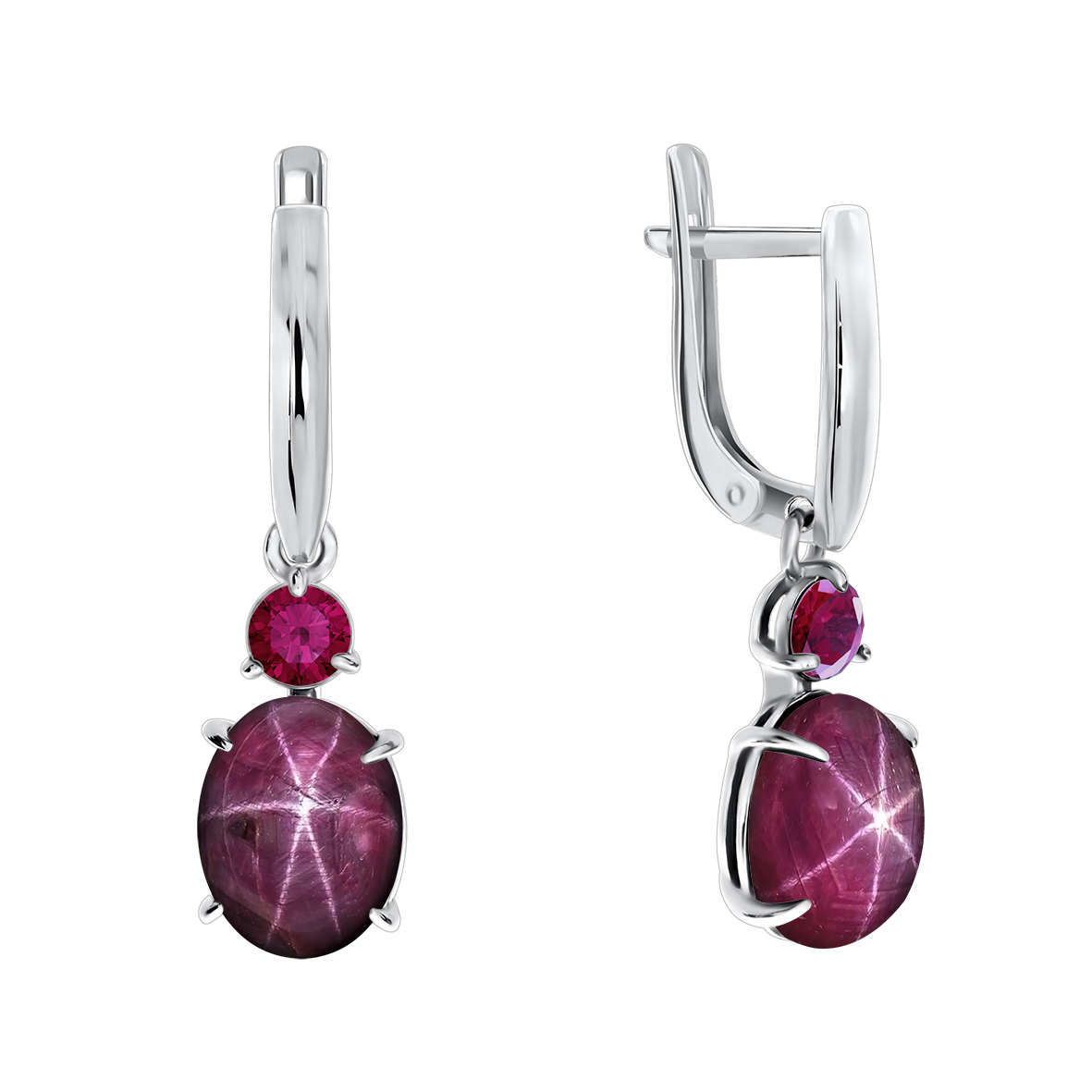 Серьги для женщин из серебра 925 пробы с синтетическими корундами,рубинами звездчатыми из коллекции Созвездие артикул 2340940367-1-37 от компании KRASNOE