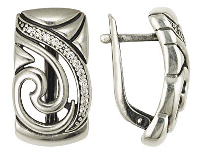 Серьги для женщин из серебра 925 пробы с фианитом артикул 3201011881 от компании Алмаз-Холдинг
