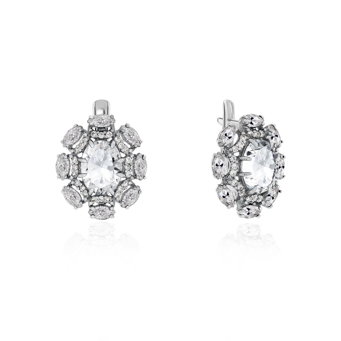 Серьги с английским замком, с заниженной иглой, с прекрасной посадкой на мочке уха, и подвесной частью - каскадом спускающихся фианитов, создающие праздничную атмосферу.