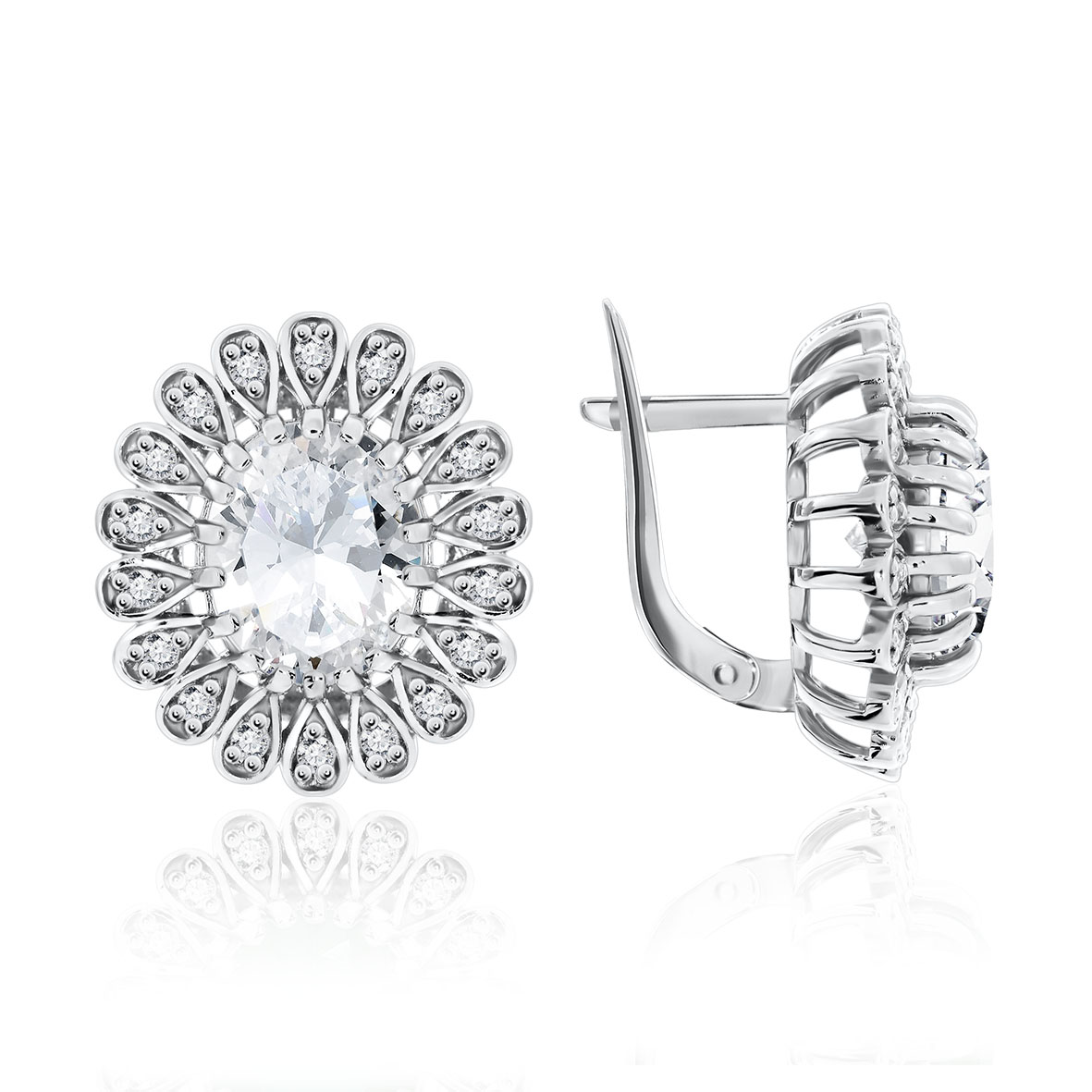 Серьги серебряные 925 пробы, покрытие родий, с кристально чистым, крупным фианитом, придающие своей владелице статусный, шикарный вид.