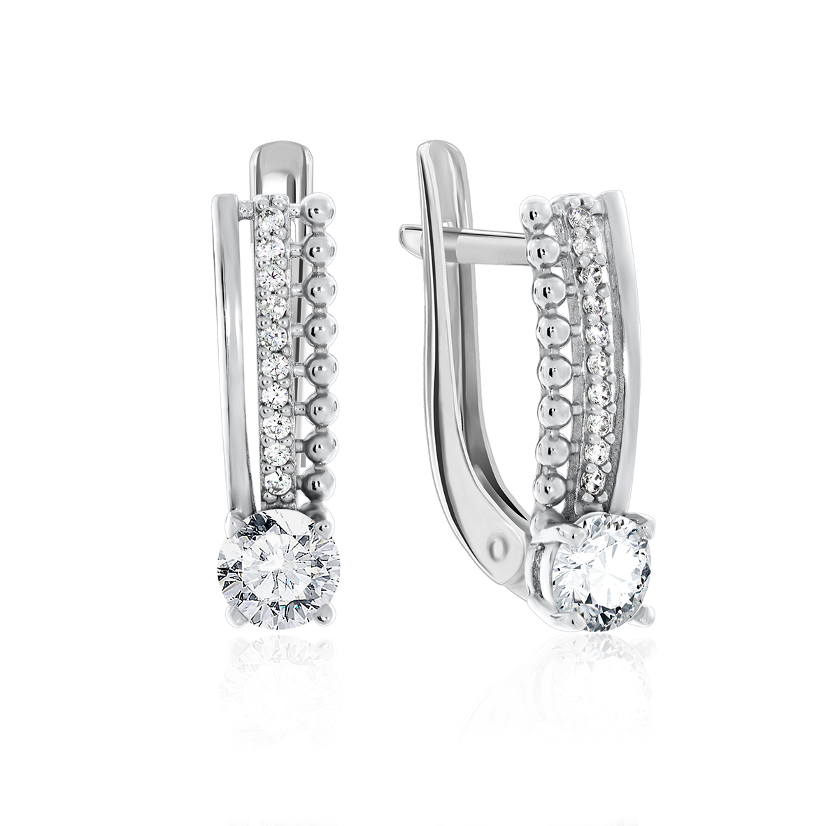 Серьги для женщин из серебра 925 пробы с фианитами из коллекции Double ring артикул 2340200355л от компании KRASNOE