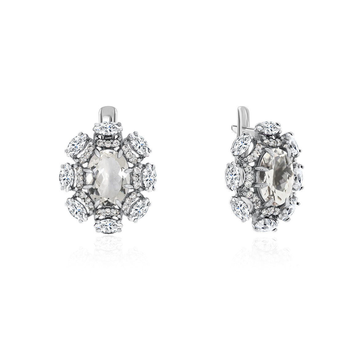 Горный хрусталь в серебре 925 пробы подчеркивает кристальную чистоту природного кристалла. Серьги в серебре с английским замком и подвесной частью роскошны и статусны.