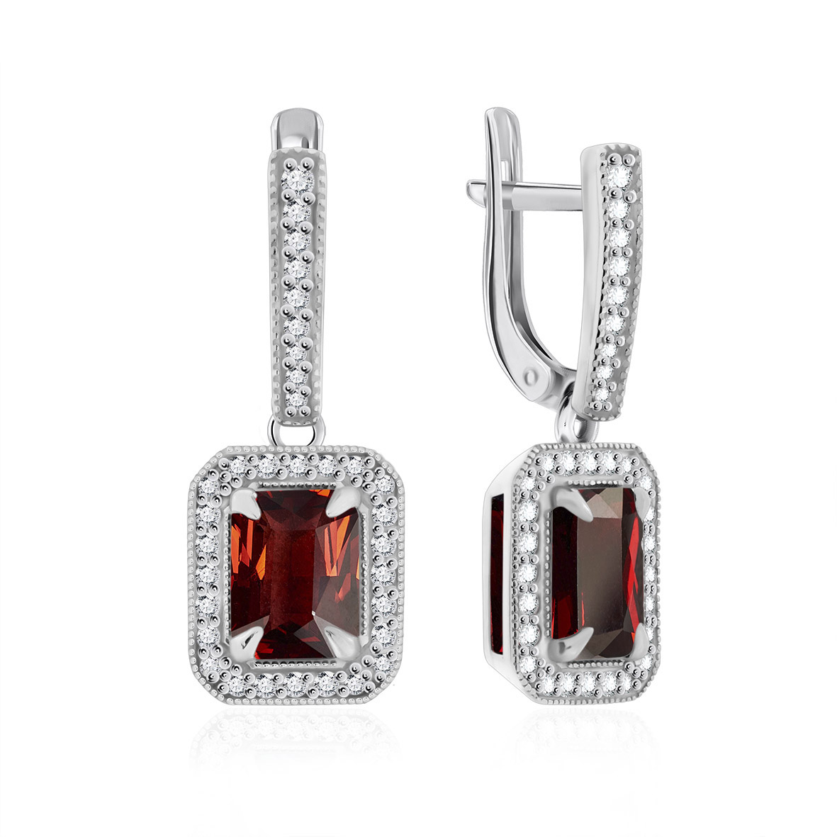 Серьги для женщин из серебра 925 пробы с гранатами,фианитами из коллекции Royals артикул 2340151806л от компании KRASNOE