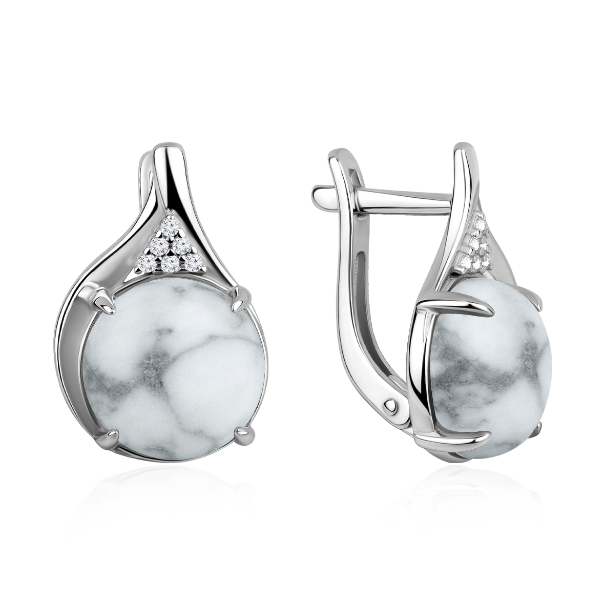 Серьги для женщин из серебра 925 пробы с кахолонгами,фианитами из коллекции Уральские самоцветы артикул 2340К05892л от компании KRASNOE