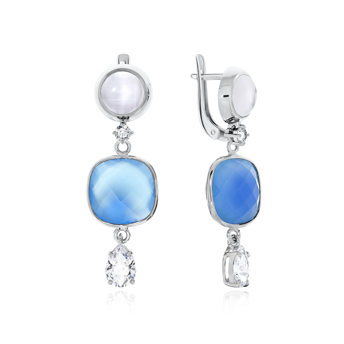 Серьги для женщин из серебра 925 пробы с кошачим глазом,халцедонами,фианитами из коллекции Candy артикул 2340872517-9 от компании KRASNOE