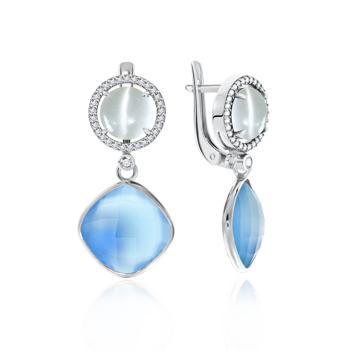 Серьги для женщин из серебра 925 пробы с кошачий глазами,халцедонами,,фианитами из коллекции Candy артикул 2340872518л-9 от компании KRASNOE