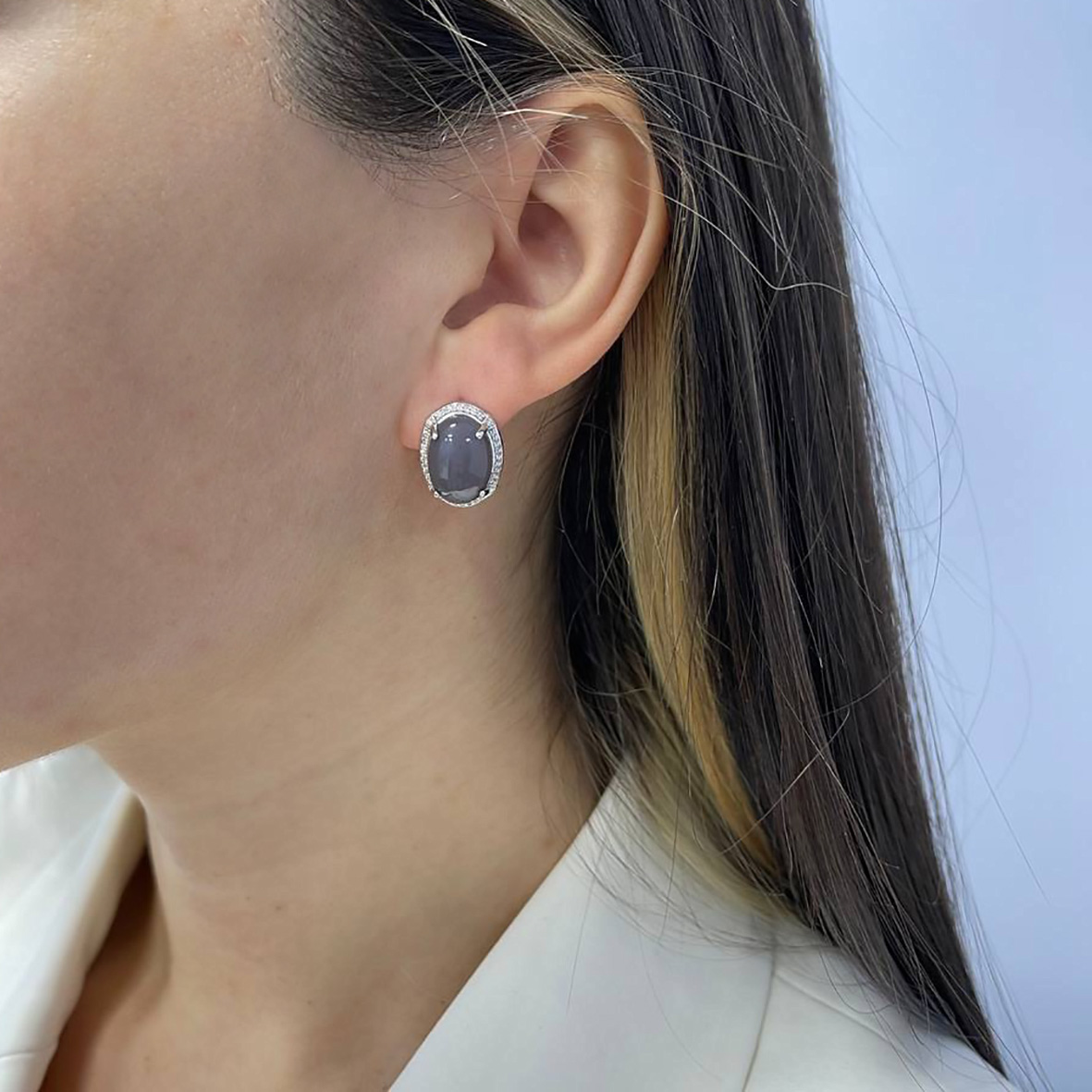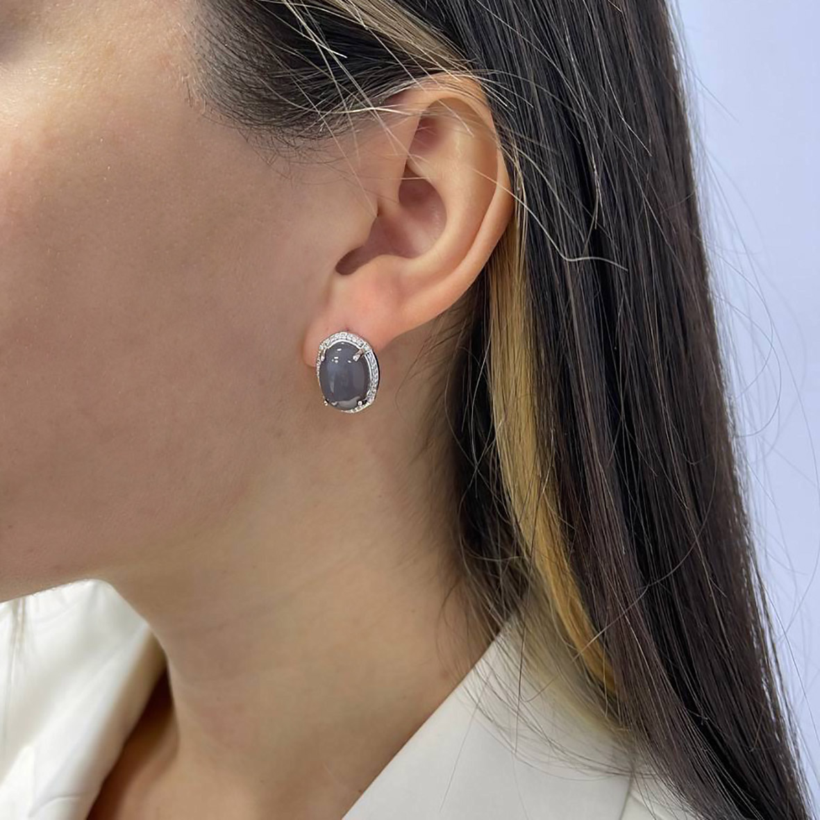 Серьги для женщин из серебра 925 пробы с халцедонами,фианитами из коллекции Уральские самоцветы артикул 2340600989л-21 от компании KRASNOE