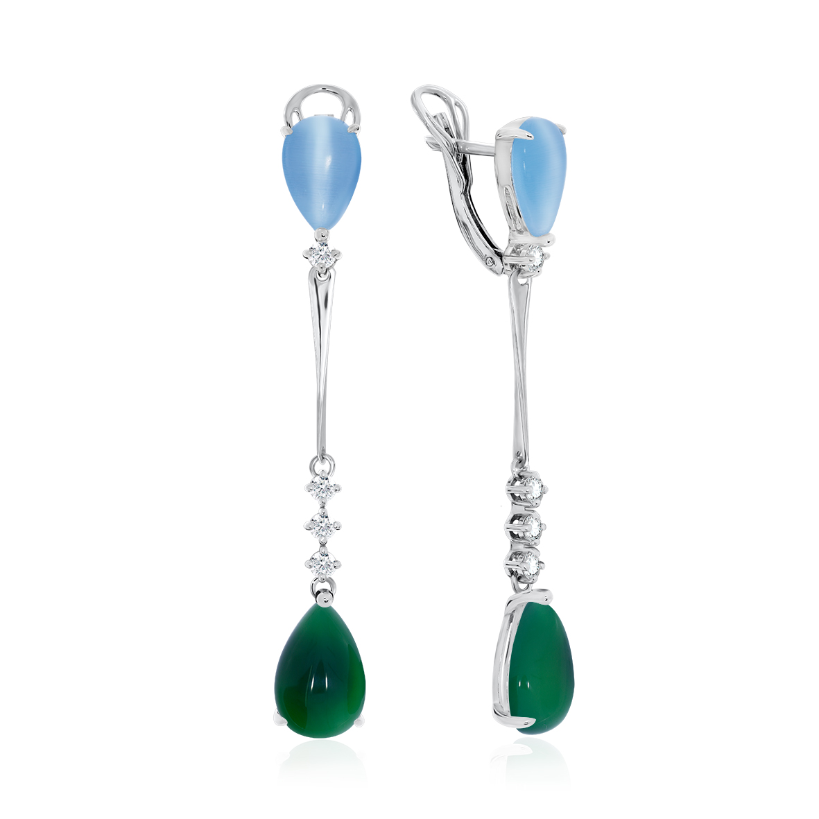 Серьги для женщин из серебра 925 пробы с кошачим глазом,хризопразами,фианитами из коллекции Shine артикул 2340141208-60 от компании KRASNOE