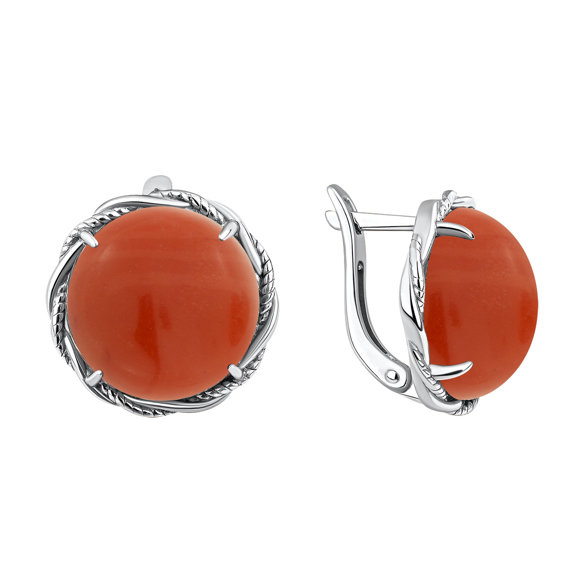 Серьги для женщин из серебра 925 пробы с кораллами из коллекции Уральские самоцветы артикул 2340505042 от компании KRASNOE