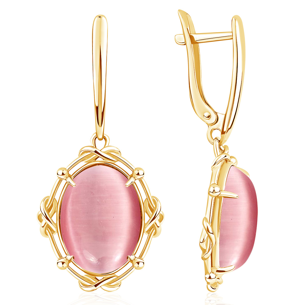 Серьги для женщин из серебра 925 пробы с кошачий глазами из коллекции Уральские самоцветы артикул 2320265098 от компании KRASNOE