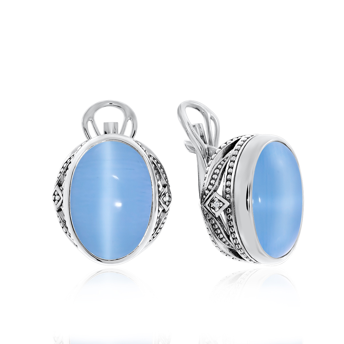 Серьги для женщин из серебра 925 пробы с кошачим глазом,фианитами из коллекции Династия артикул 2310260967-70 от компании KRASNOE