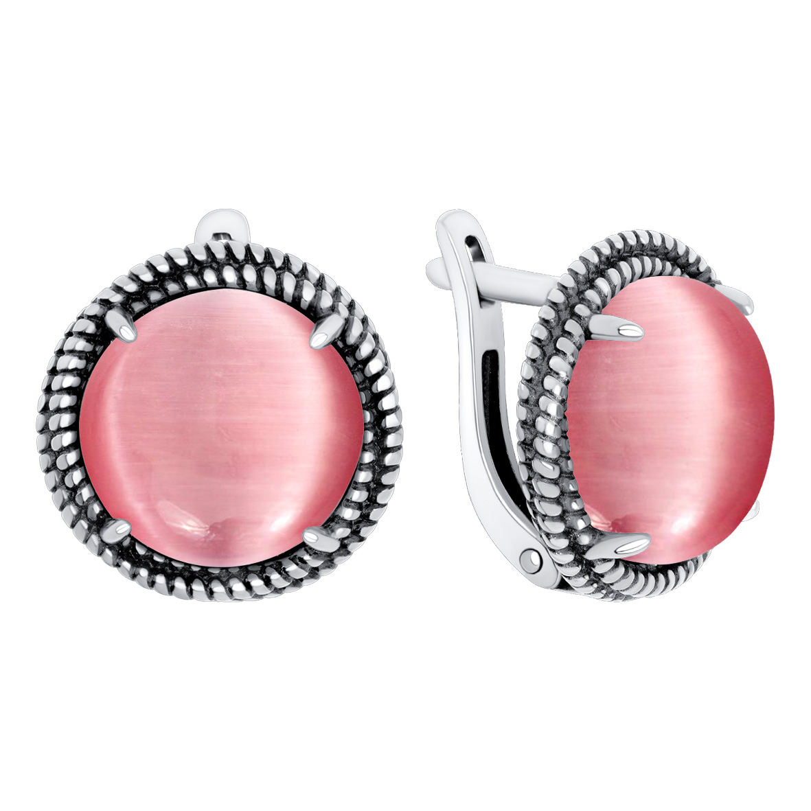 Серьги для женщин из серебра 925 пробы с имитацией кошачьего глаза из коллекции Уральские самоцветы артикул 2310265747-30 от компании KRASNOE
