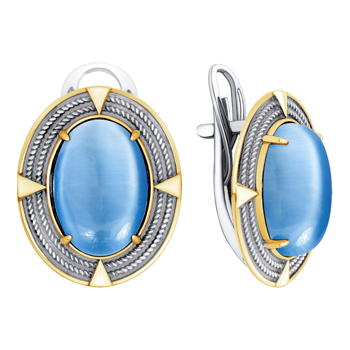 Серьги для женщин из серебра 925 пробы с кош. глаз гол. синт.ами из коллекции Династия артикул 2317265779-70 от компании KRASNOE