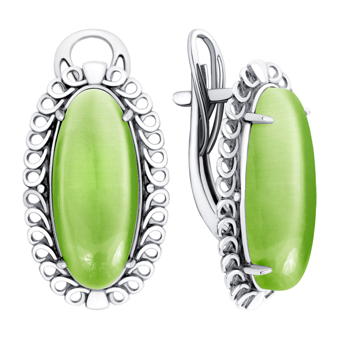 Серьги для женщин из серебра 925 пробы с кошачим глазом из коллекции Уральские самоцветы артикул 2310265781-57 от компании KRASNOE
