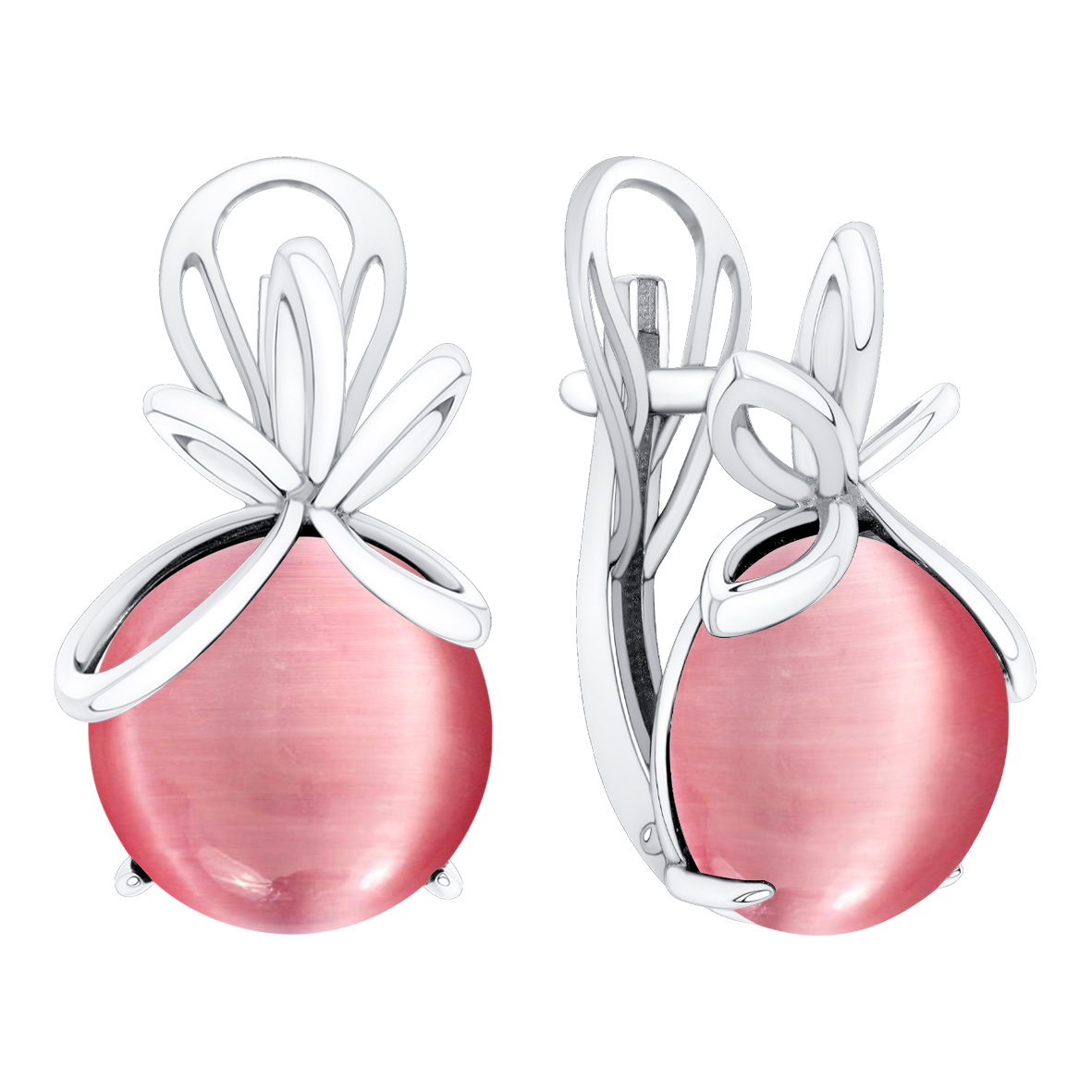 Серьги для женщин из серебра 925 пробы с имитацией кошачьего глаза из коллекции Уральские самоцветы артикул 2340265807-30 от компании KRASNOE