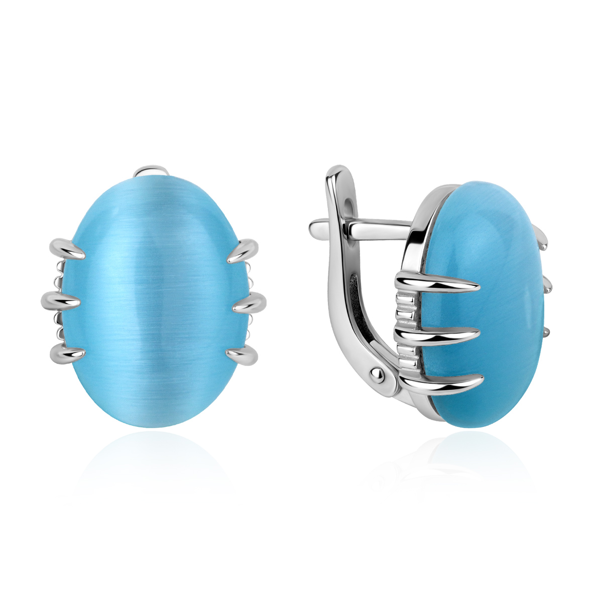 Серьги для женщин из серебра 925 пробы с имитацией кошачьего глаза из коллекции Уральские самоцветы артикул 2340266356-70 от компании KRASNOE