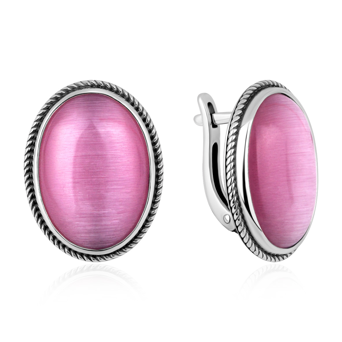 Серьги для женщин из серебра 925 пробы с кошачий глазами из коллекции Уральские самоцветы артикул 2310266357-30 от компании KRASNOE